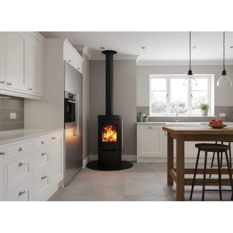 - Подключение свежего воздуха Ø100 мм для эффективной работы