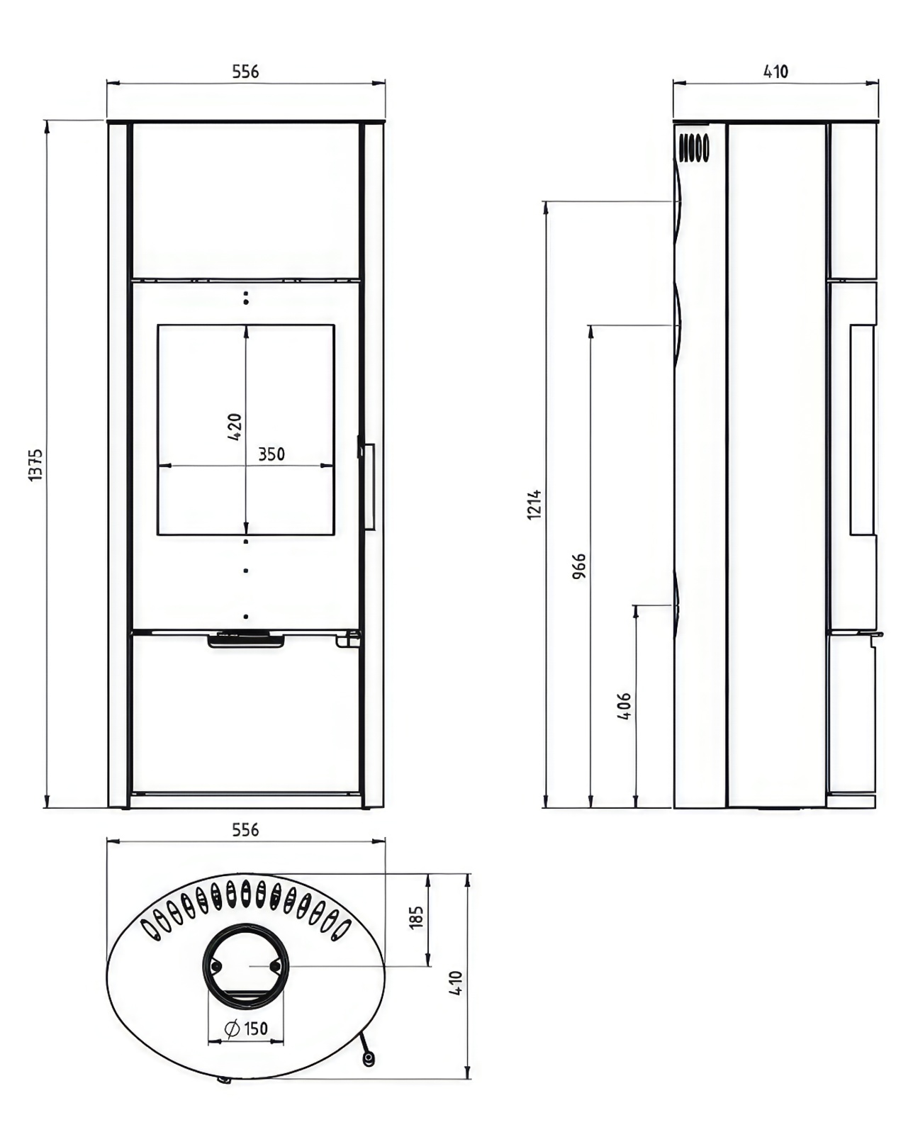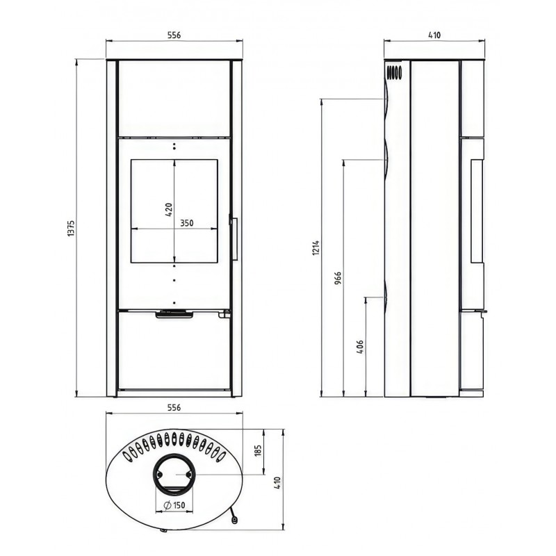- Диаметр дымохода:150 мм