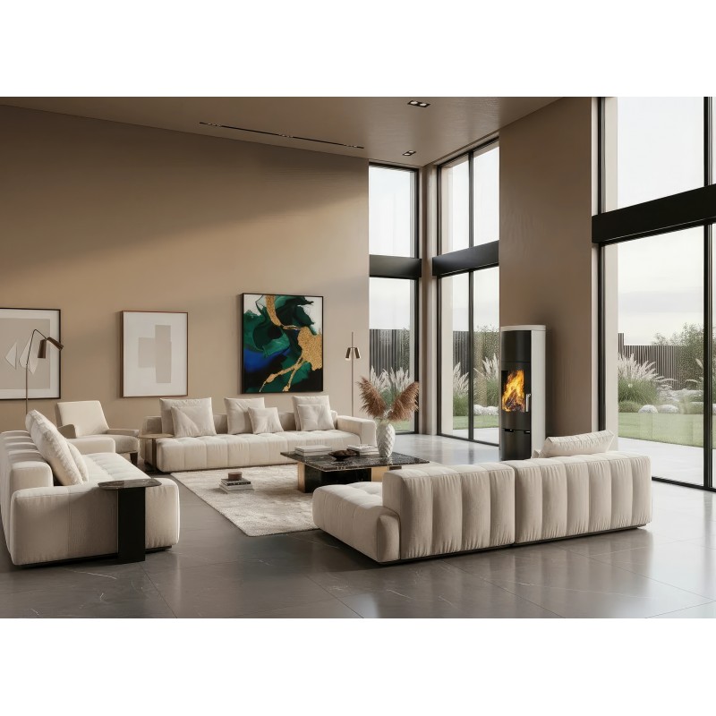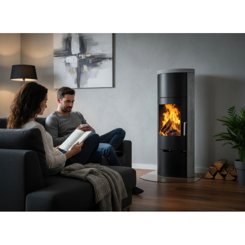 Топка изготовлена из высококачественной стали с футеровкой из термостойкого материала, который аккумулирует тепло и отдает его даже после затухания огня. Ember E11 соответствует строгим европейским экологическим нормам, обеспечивая полное сгорание топлива с минимальным выбросом CO.