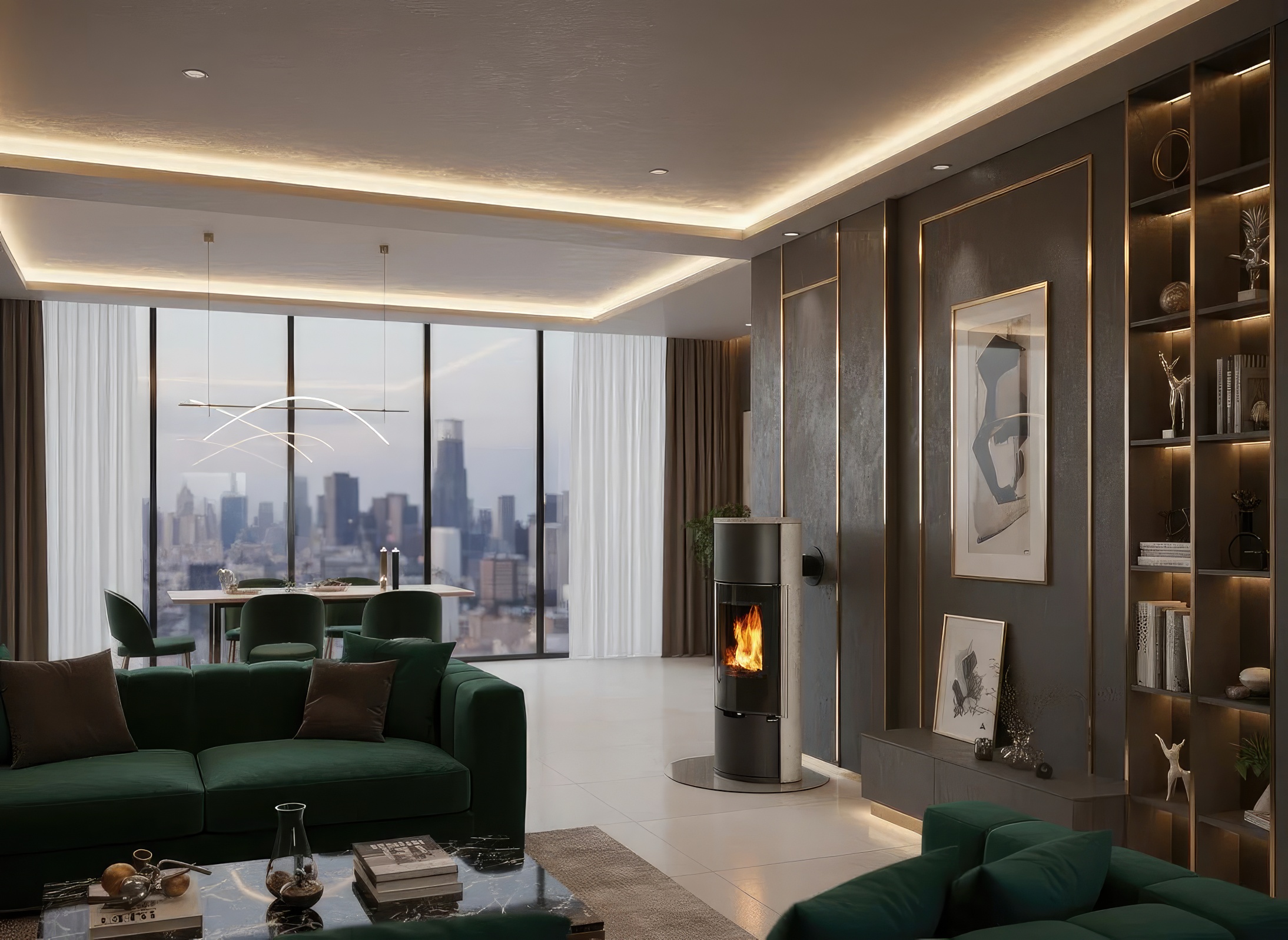 Живое пламя создаёт атмосферу уюта и расслабления — идеальное решение для гостиной, загородного дома или дачи. Печь не только обогревает, но и становится центром внимания в интерьере.