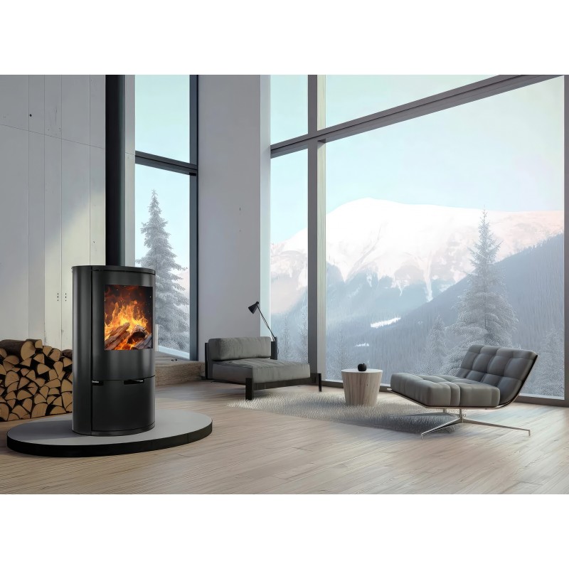 Корпус выполнен из котловой стали с термостойким покрытием. Топка футерована вермикулитом высокой плотности, что обеспечивает чистое сгорание и защищает сталь от прямого воздействия огня. Модель поддерживает подключение внешнего воздуха (CPV), что критически важно для домов с принудительной вентиляцией или высокой герметичностью.