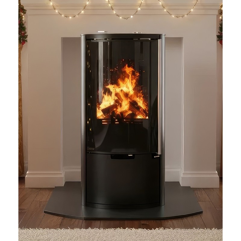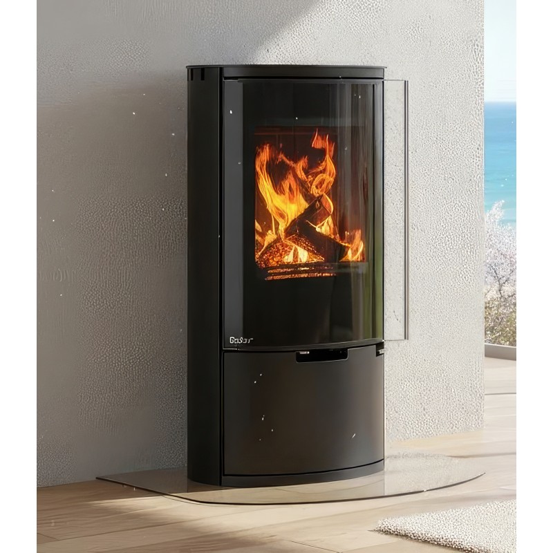 Внутренняя облицовка из вермикулита высокой плотности защищает стальной корпус и способствует самоочистке стекла за счет высокой температуры в камере. В нижней части печи расположена открытая дровница, которая не только удобна в эксплуатации, но и дополняет уютный образ дровяного камина.
