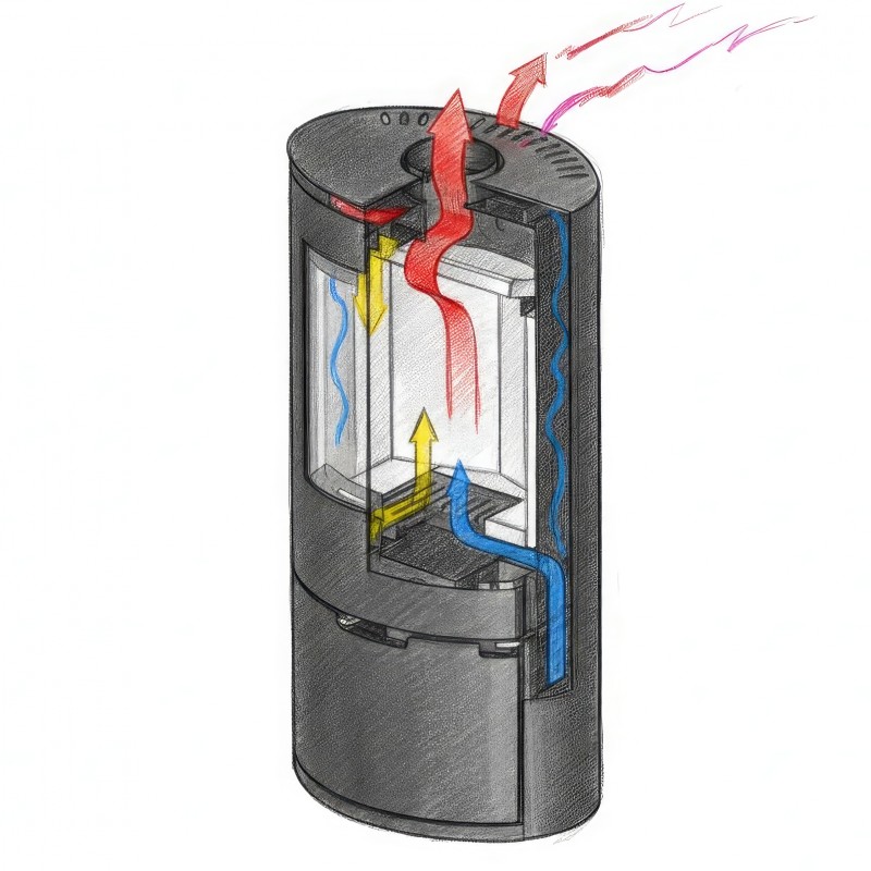 - Высокая мощность до 8 кВт: Увеличенная высота корпуса (более 1.1 м) и объемная топка позволяют эффективно отапливать просторные загородные дома.