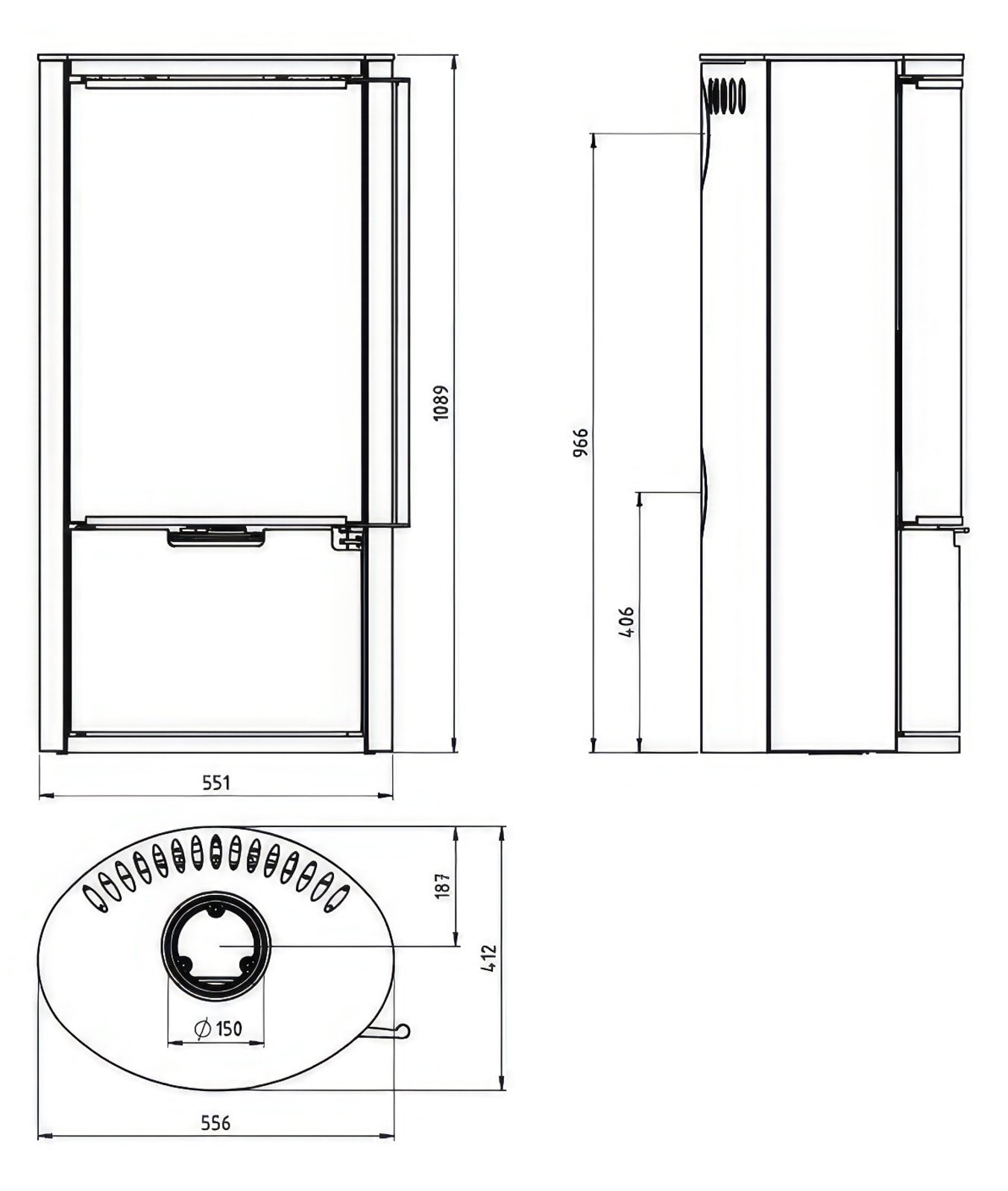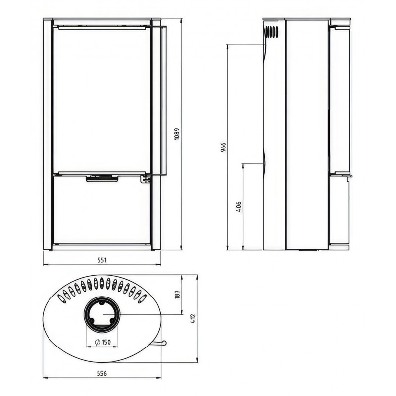 - Диаметр дымохода:150 мм