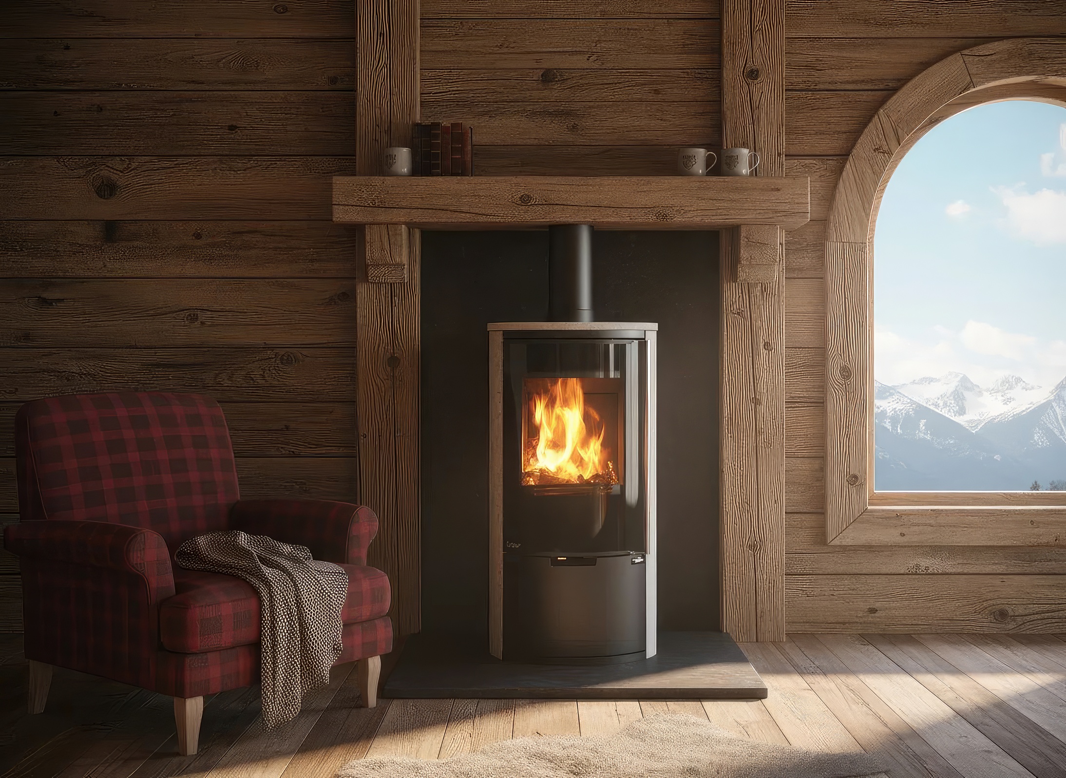- Эффективность и экологичность: КПД 81% и система вторичного дожига обеспечивают полное сгорание дров с минимальным количеством золы.