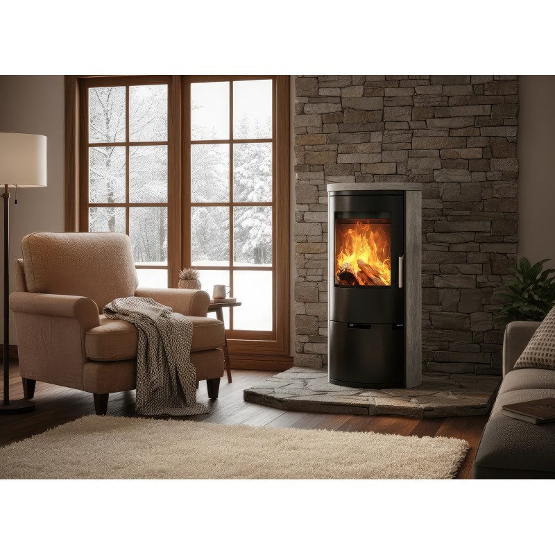 Печь-камин Ember E14 Limestoneв камне — это высокопроизводительное отопительное решение для тех, кто ценит современный дизайн и надежность. Благодаря увеличенной камере сгорания и внушительной высоте (свыше 1100 мм), эта модель становится доминирующим элементом интерьера, обеспечивая при этом полноценный прогрев просторных помещений.