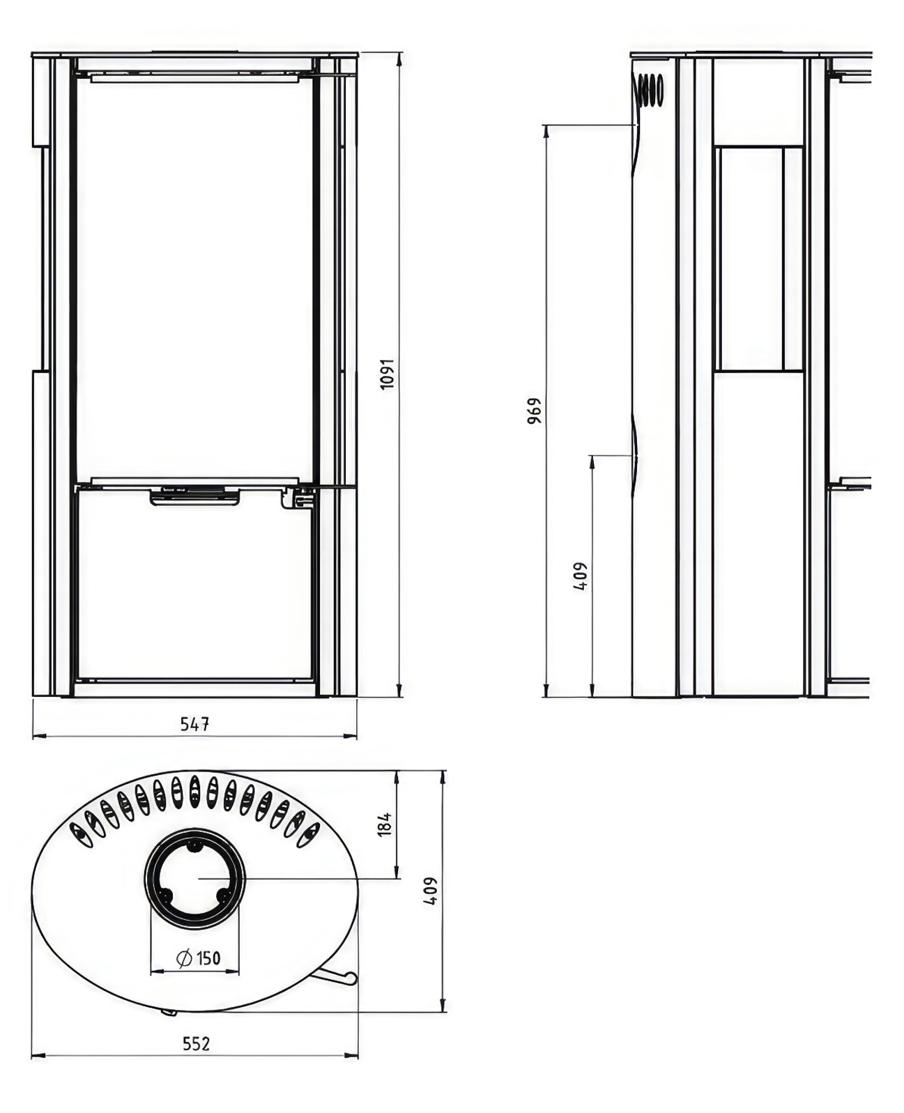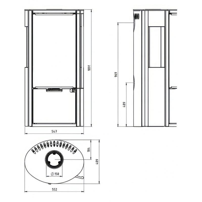 - Диаметр дымохода:150 мм