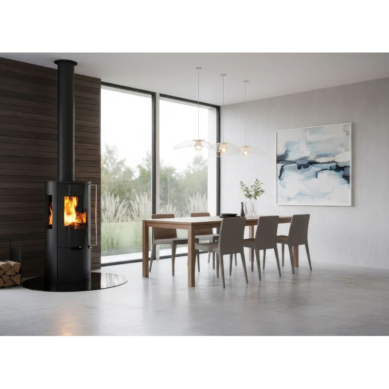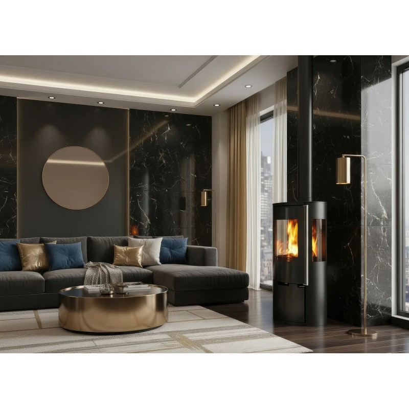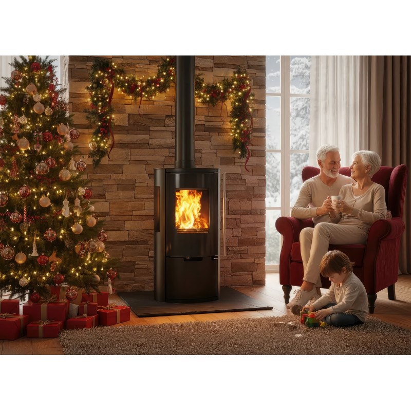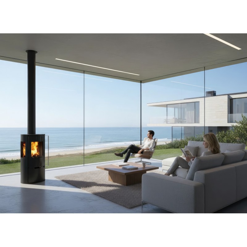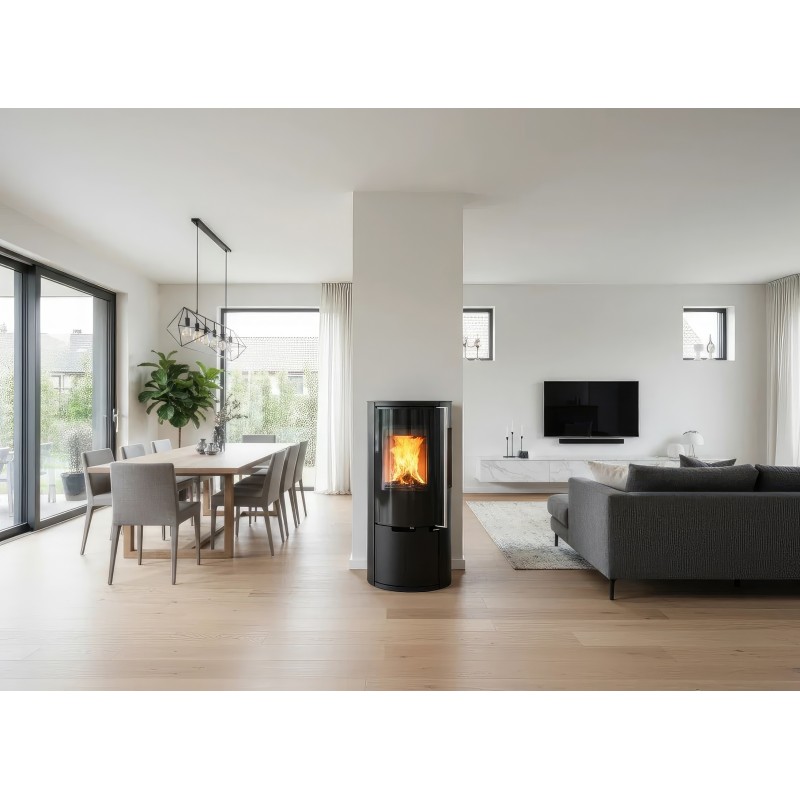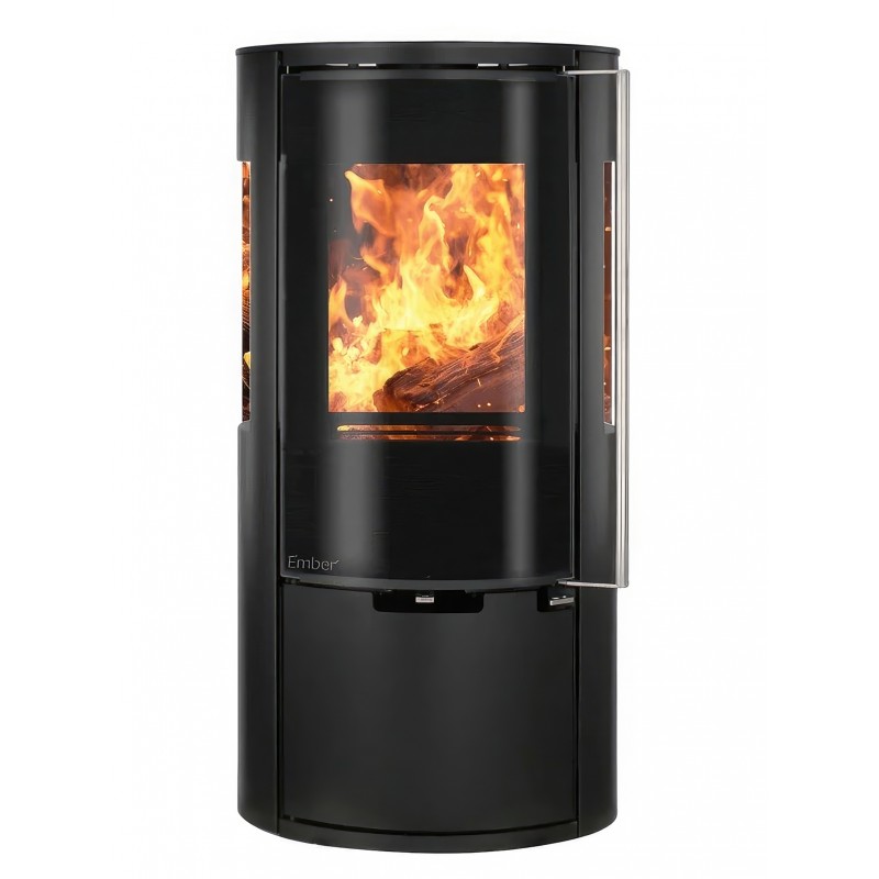 Печь-камин Ember E15 FG создана для тех, кто ищет золотую середину между компактностью и высокой производительностью. Индекс Full Glass (FG) указывает на премиальное исполнение дверцы: жаропрочное стекло с нанесенной по периметру черной шелкографией полностью закрывает стальную раму, создавая эффектный безрамочный вид и визуально расширяя обзор пламени.
