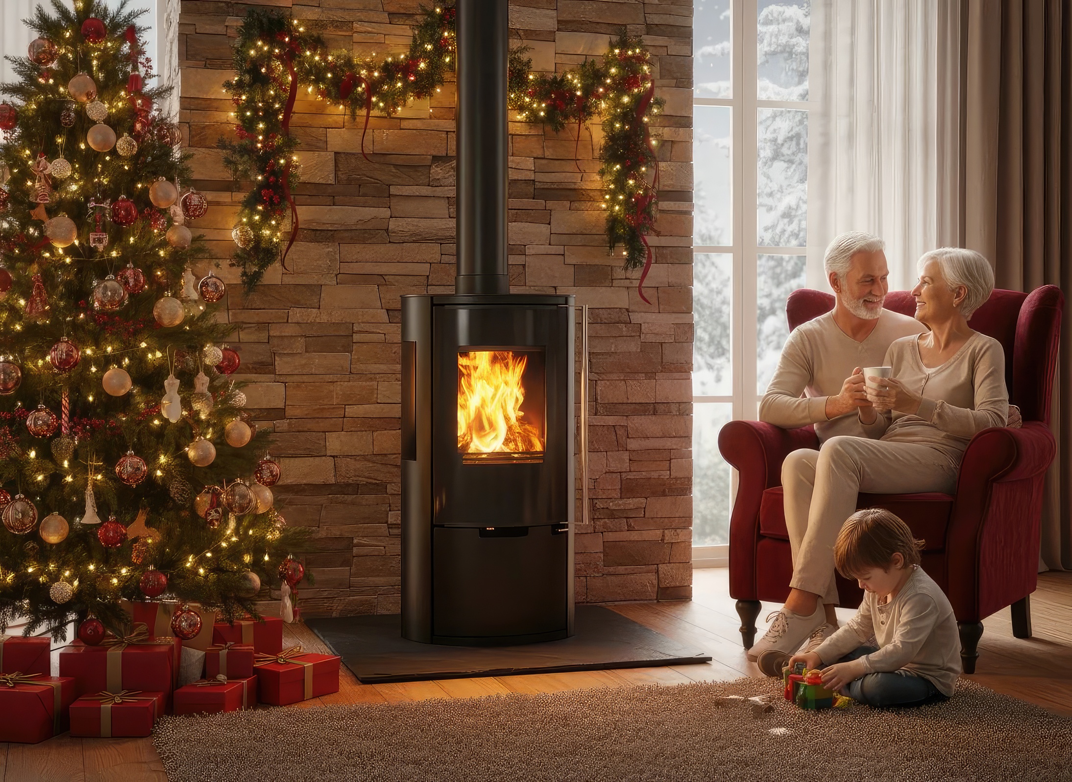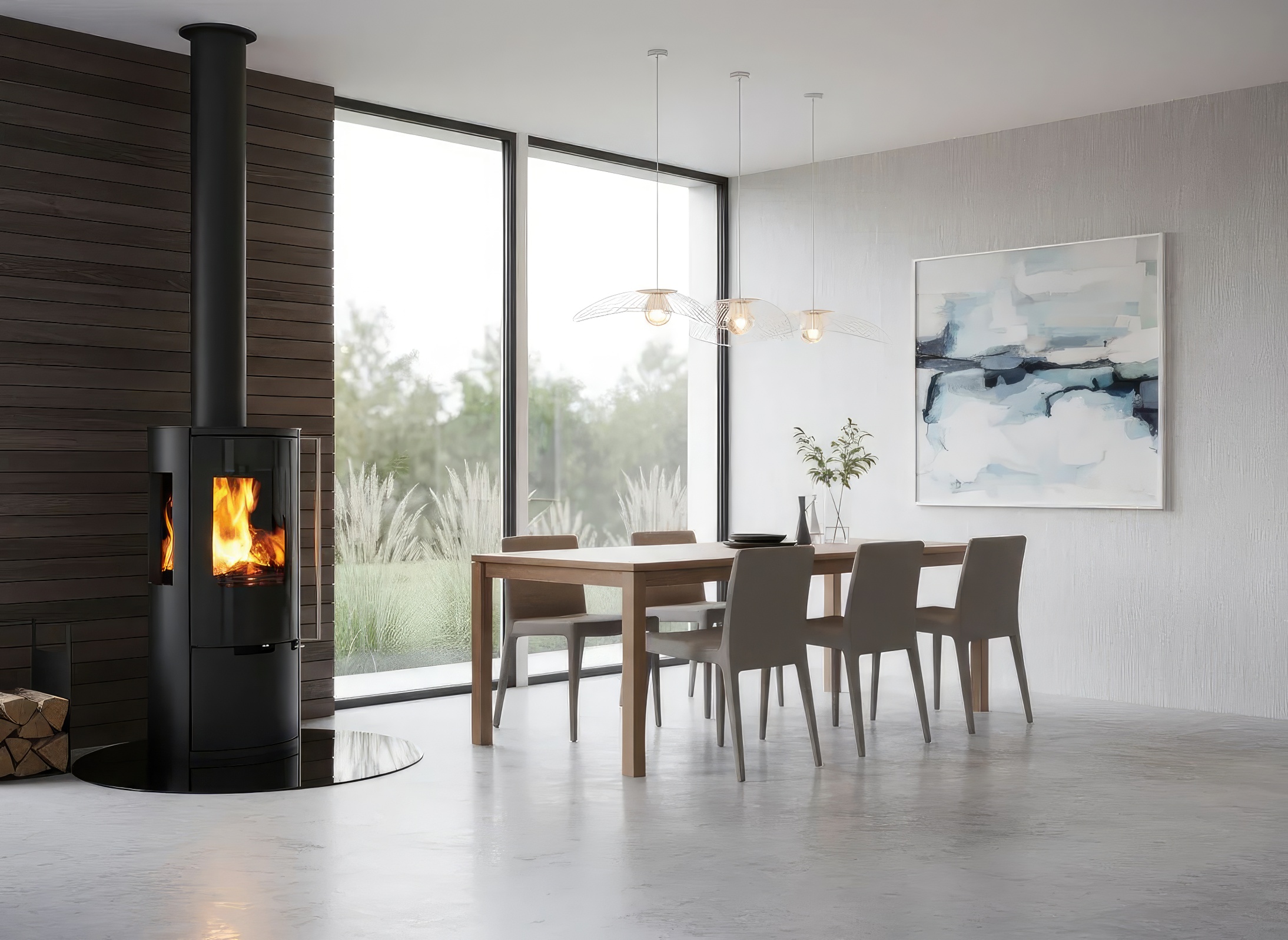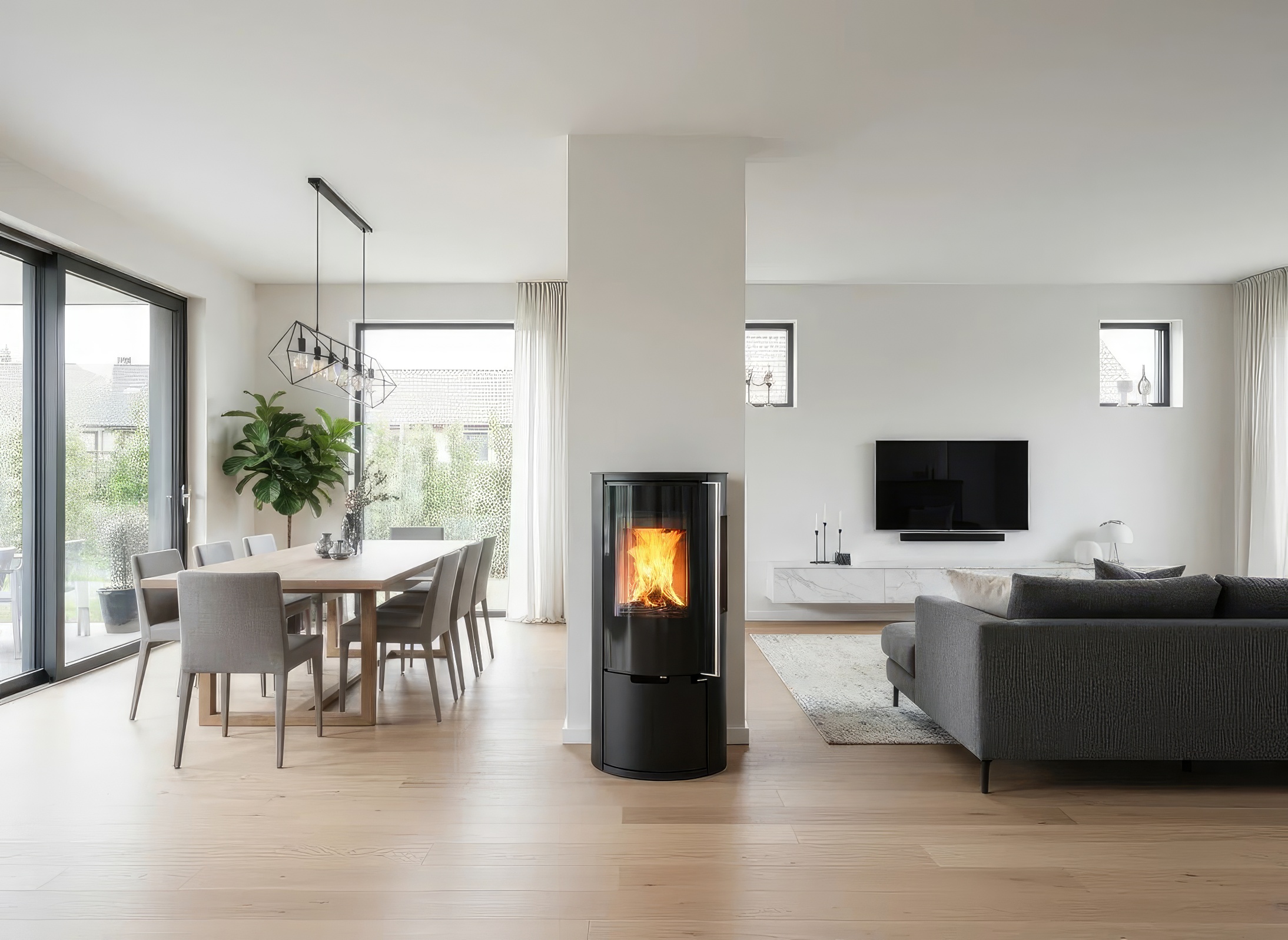 - Трёхстороннее остекление — максимальный обзор пламени