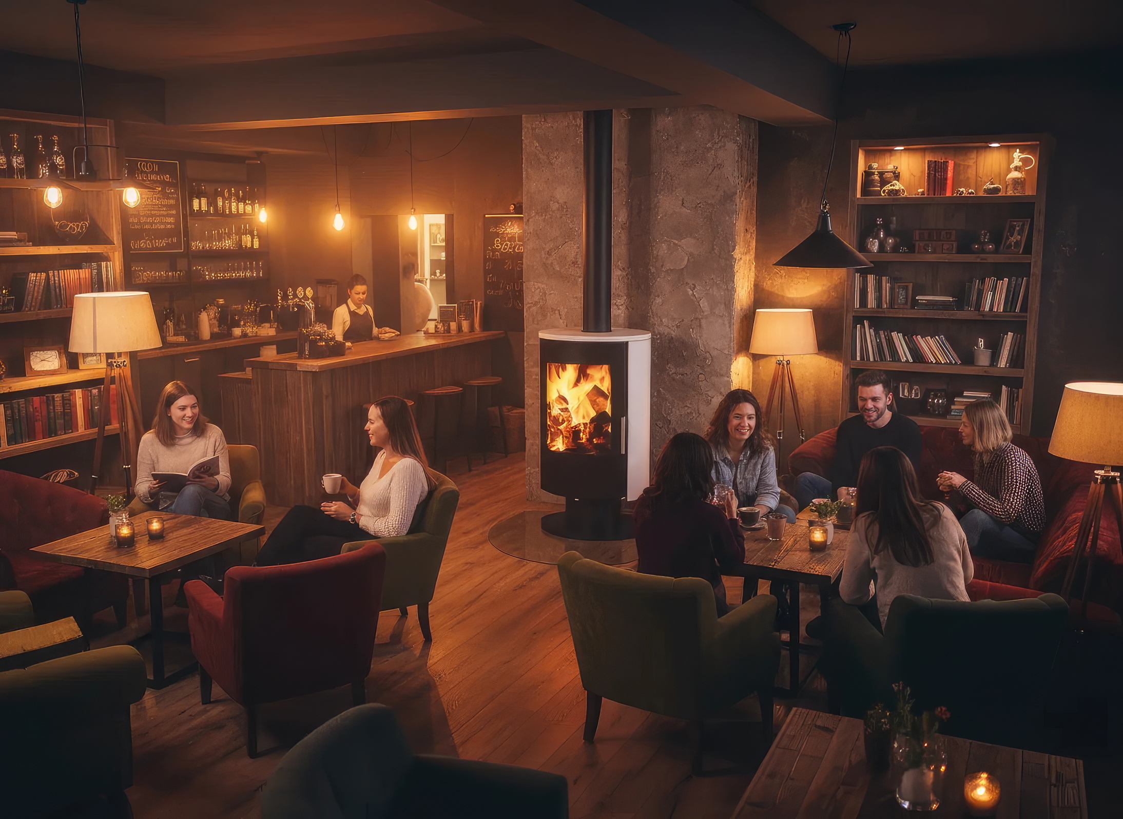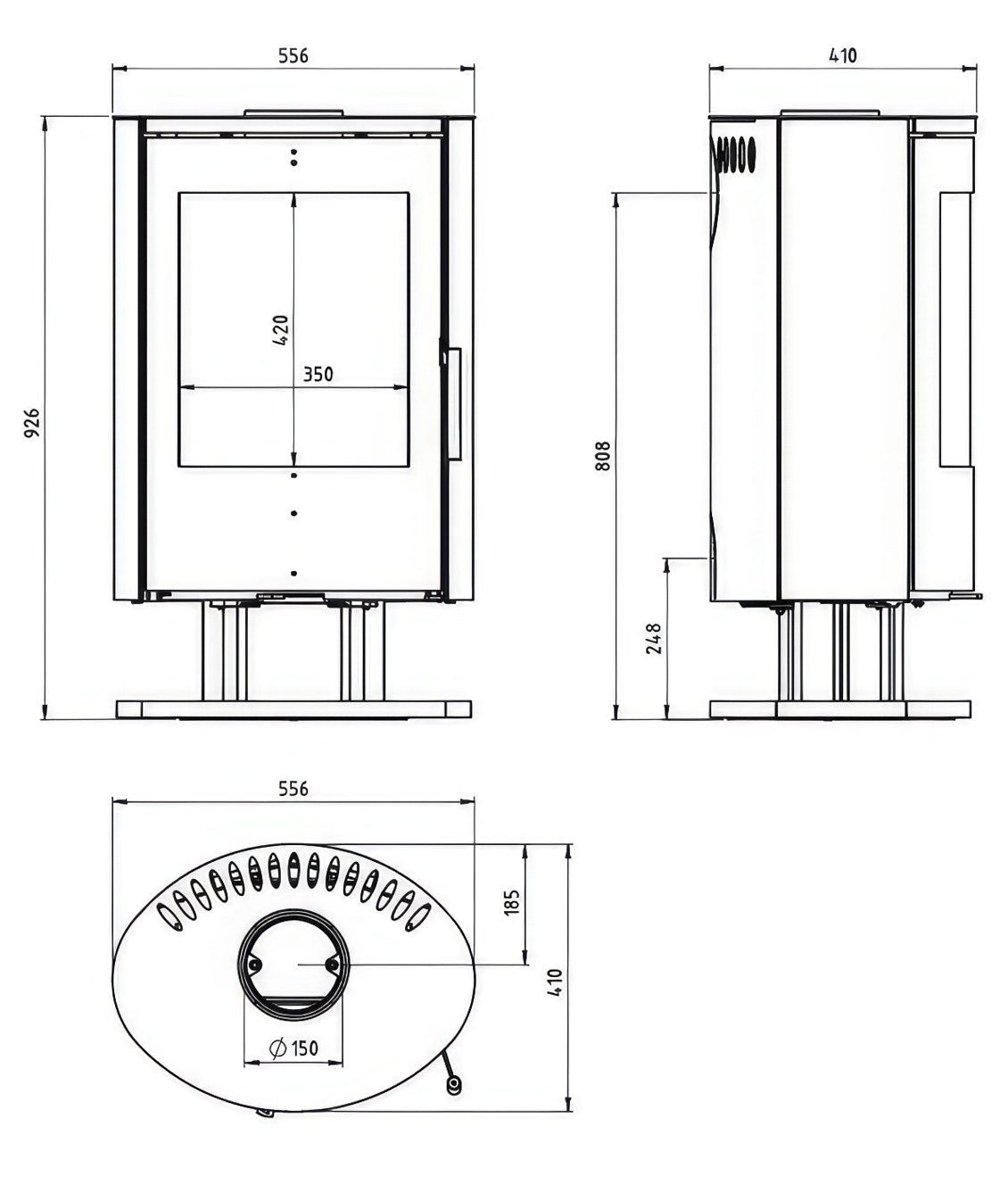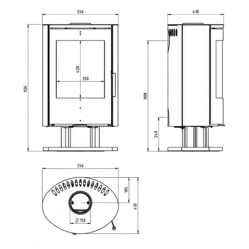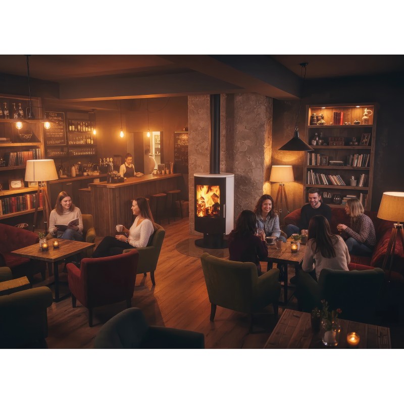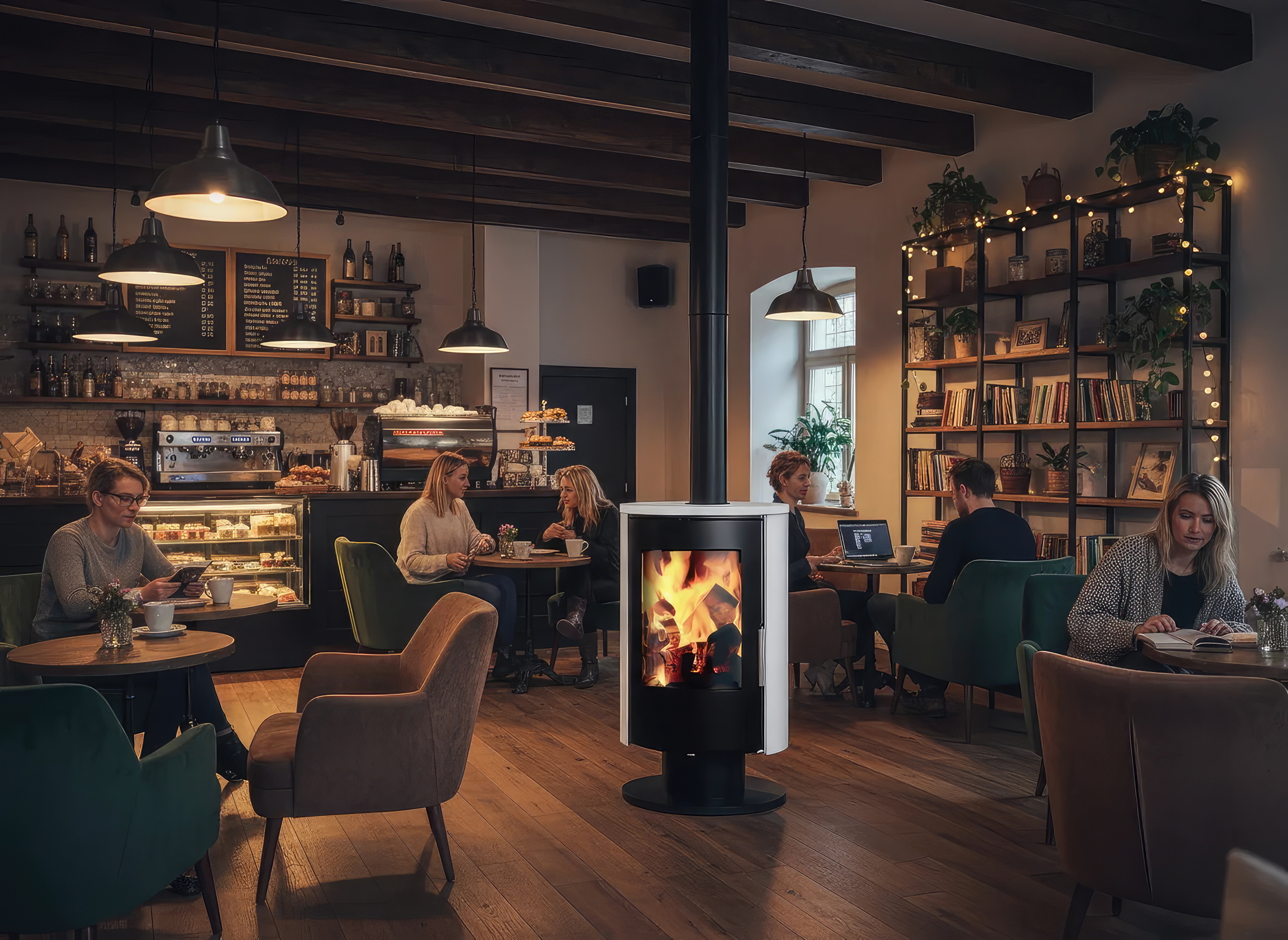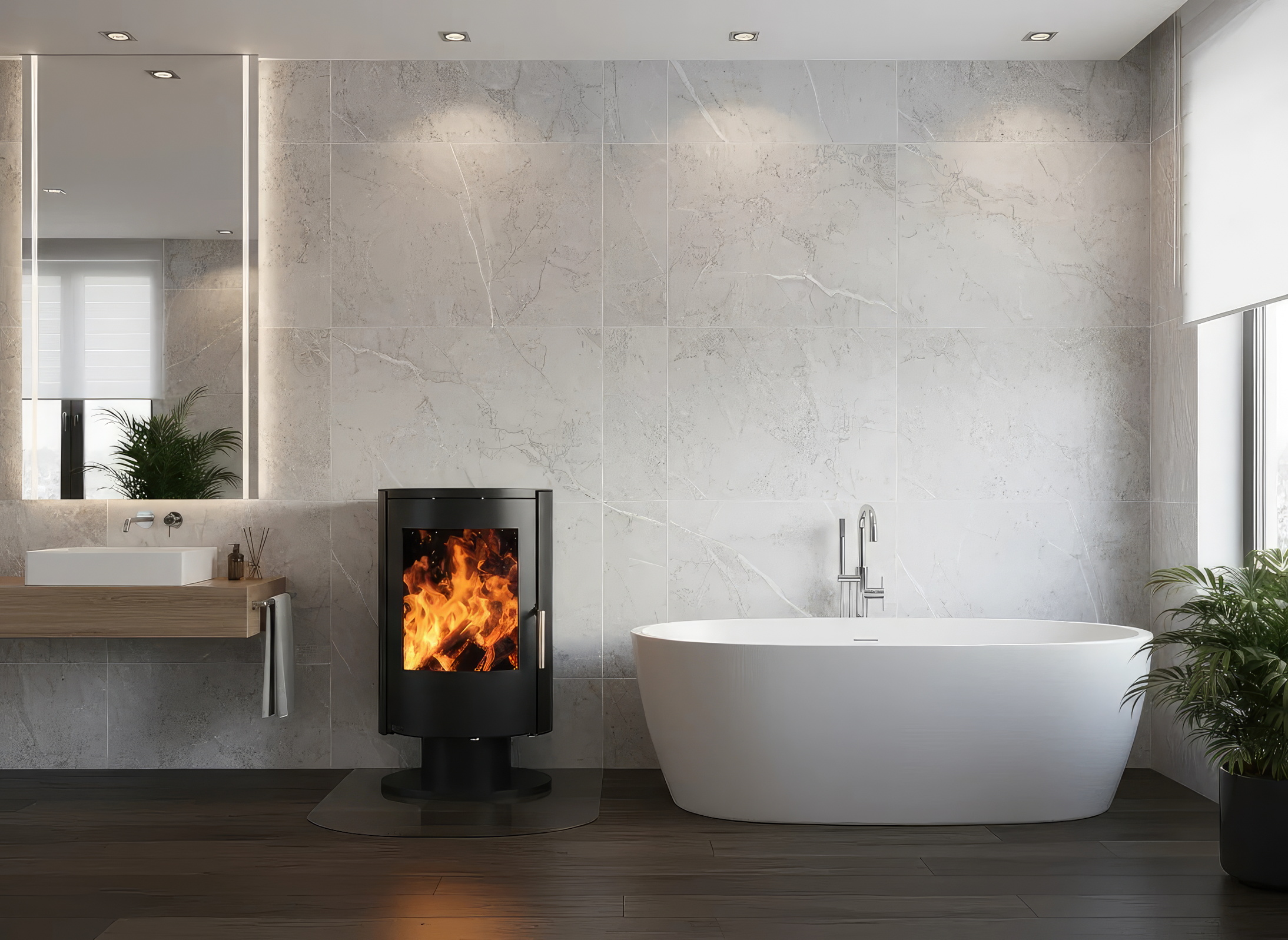 Минималистичный цилиндрический корпус в черном цвете идеально вписывается в интерьеры в стиле Hi-Tech, Loft или Скандинавия. Верхнее подключение дымохода делает монтаж аккуратным и компактным.