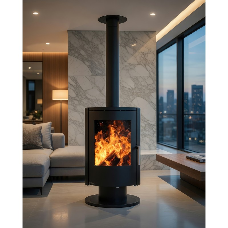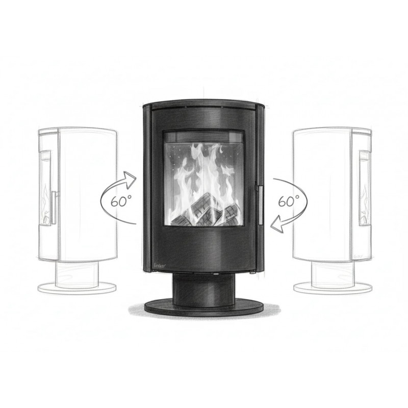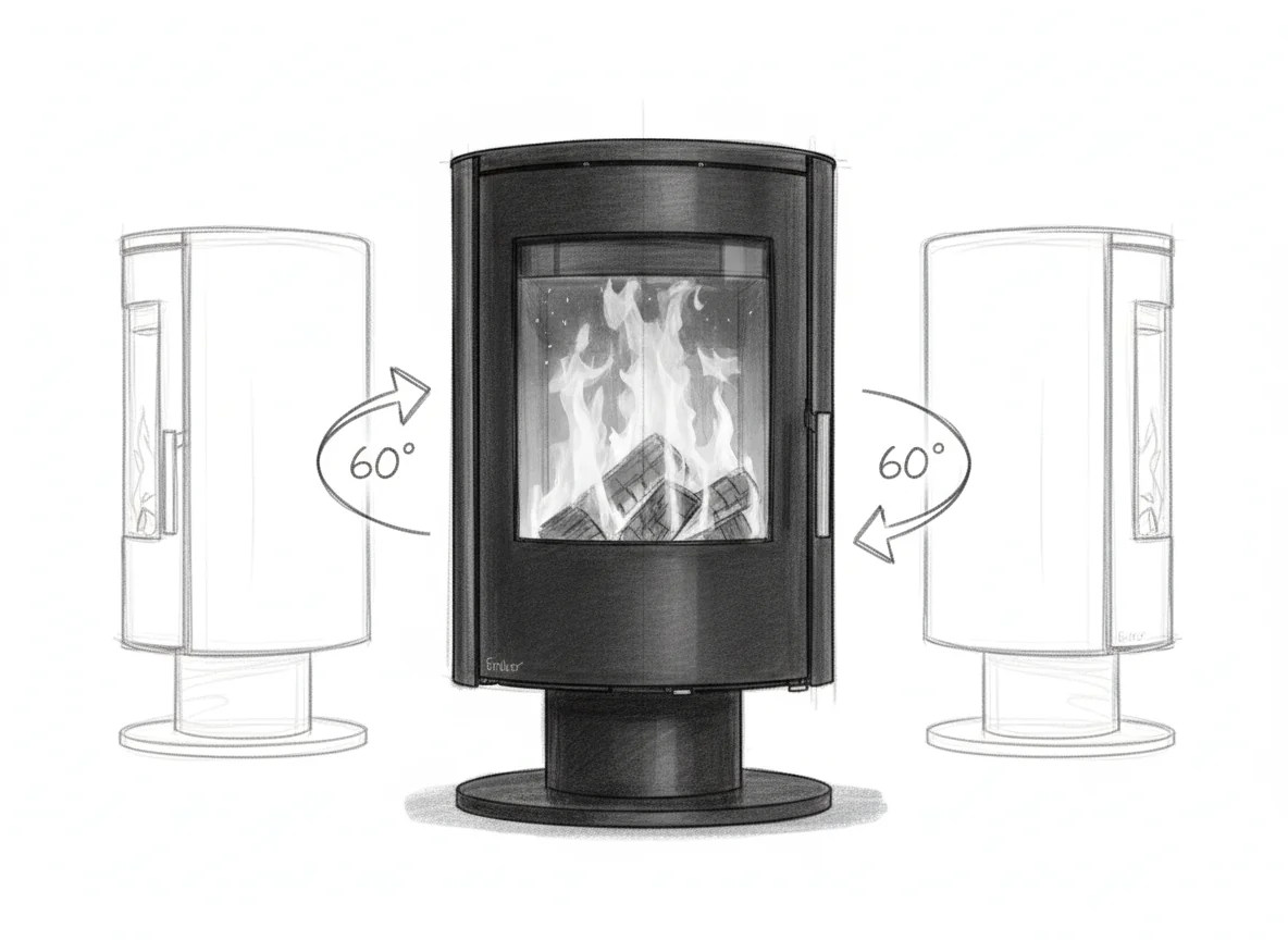 Печь-камин Ember E16 — это воплощение современного европейского дизайна и передовых отопительных технологий. Главная особенность модели — поворотный механизм на 360°, который позволяет ориентировать топочную камеру в любую сторону. Теперь вы можете наслаждаться видом живого пламени из обеденной зоны, зоны отдыха или кухни, просто повернув корпус печи.