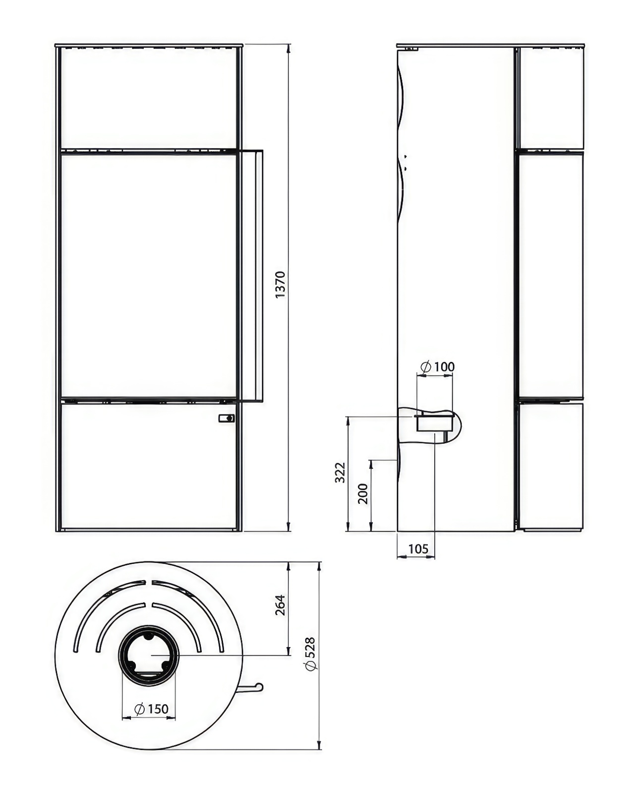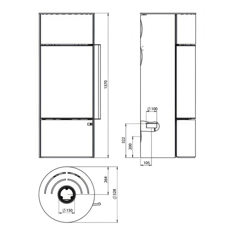 - Диаметр дымохода:150 мм