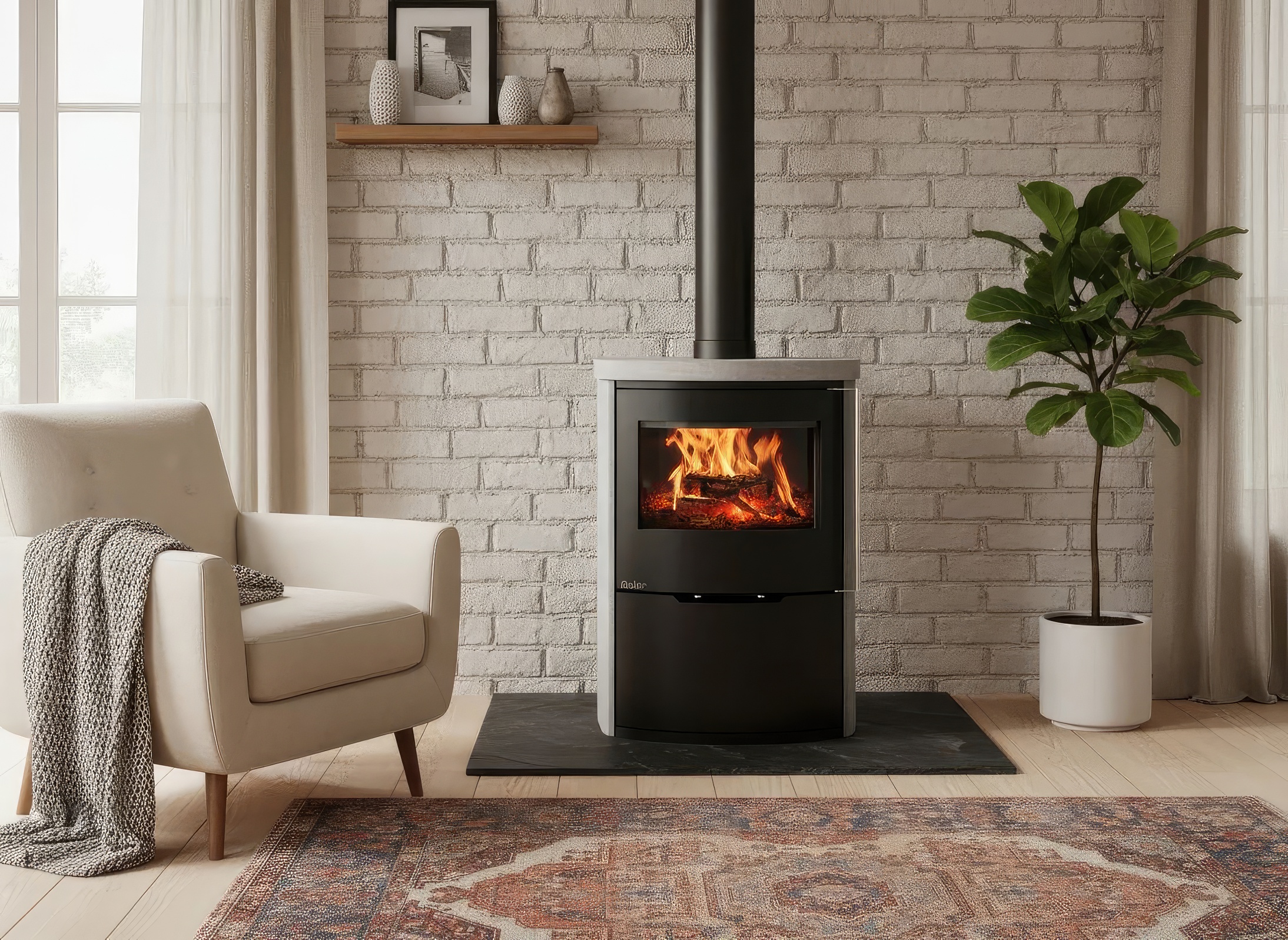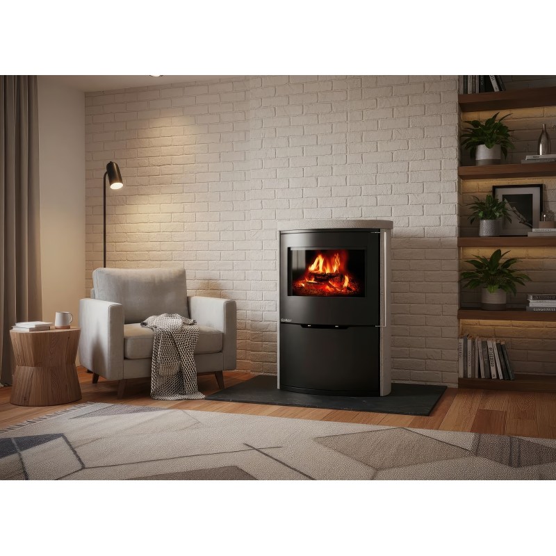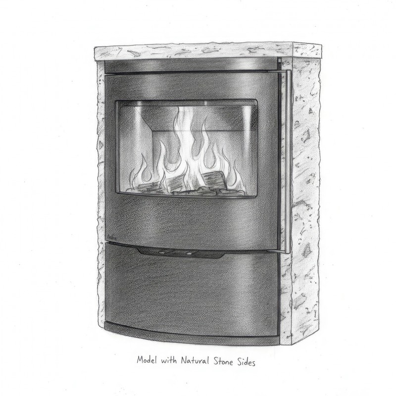 - Формат XL (High): Высота корпуса 800 мм придает печи стройный и статный вид, превращая её в полноценную художественную инсталляцию на стене.