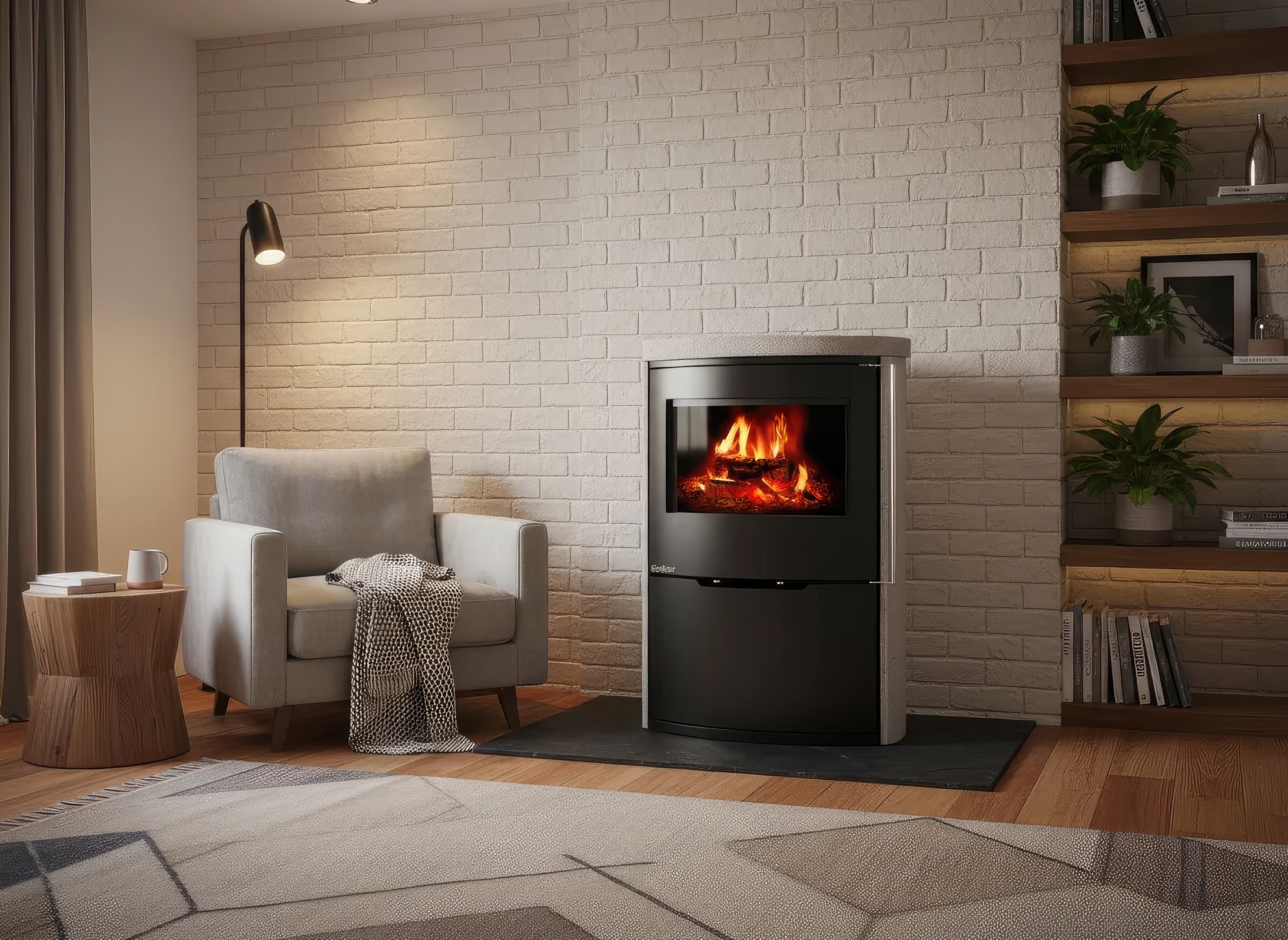 - Свободное пространство: Подвесной монтаж оставляет пол под камином абсолютно свободным, что упрощает уборку и сохраняет ощущение легкости в комнате.
