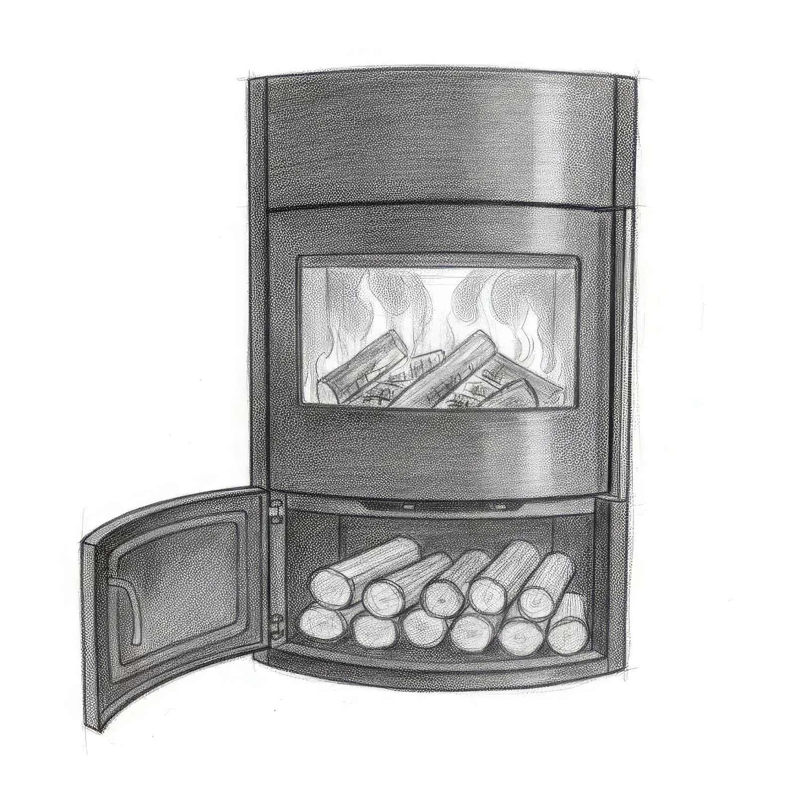 - Форма стекла топки:сферическая