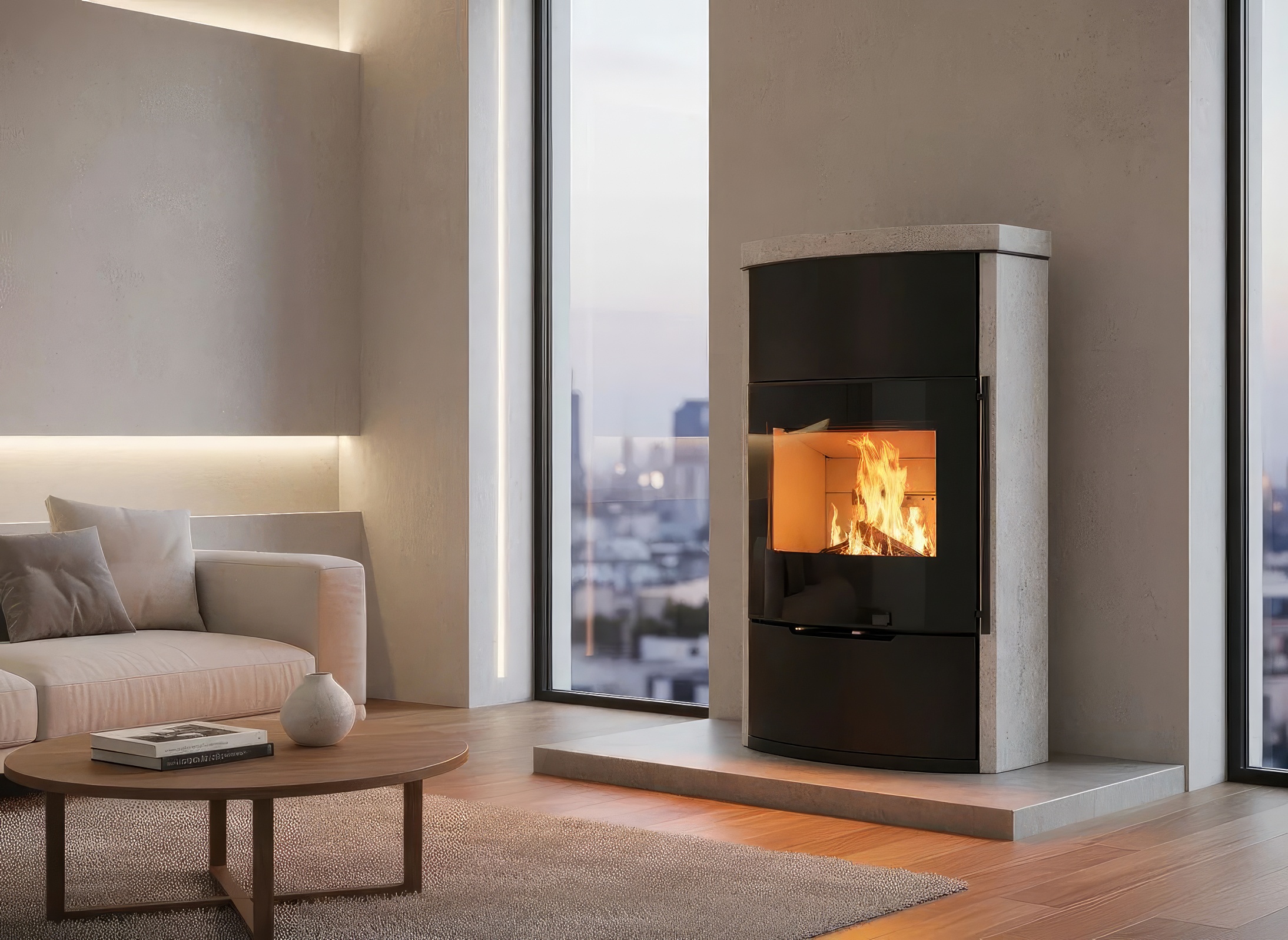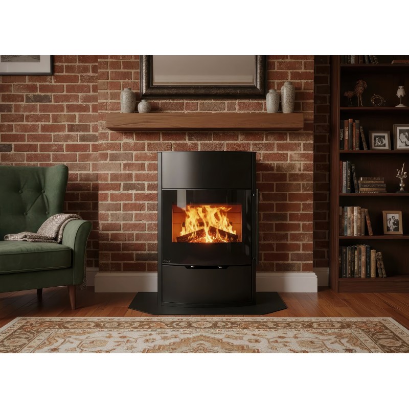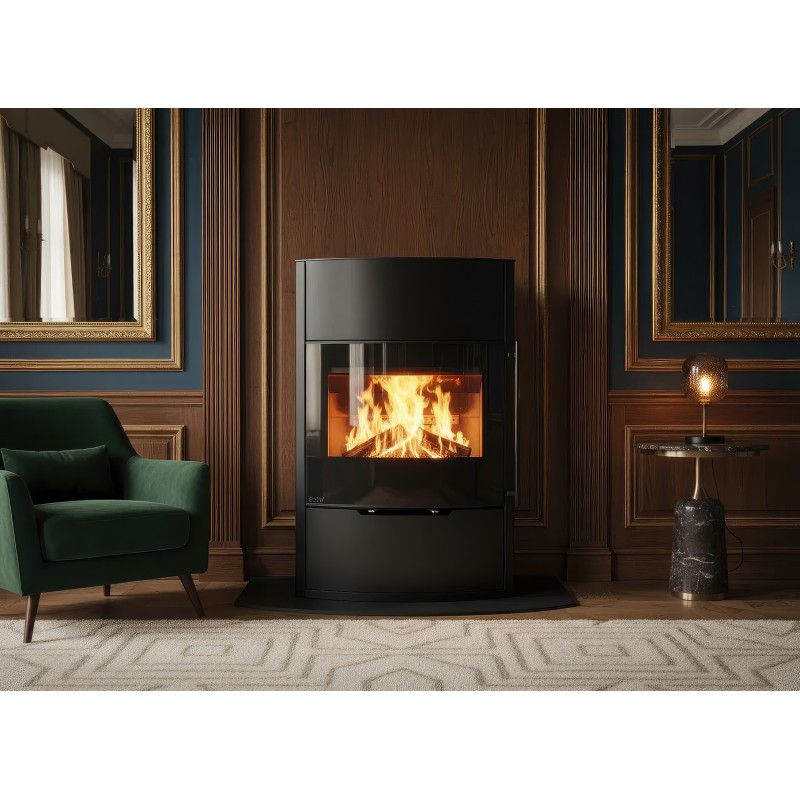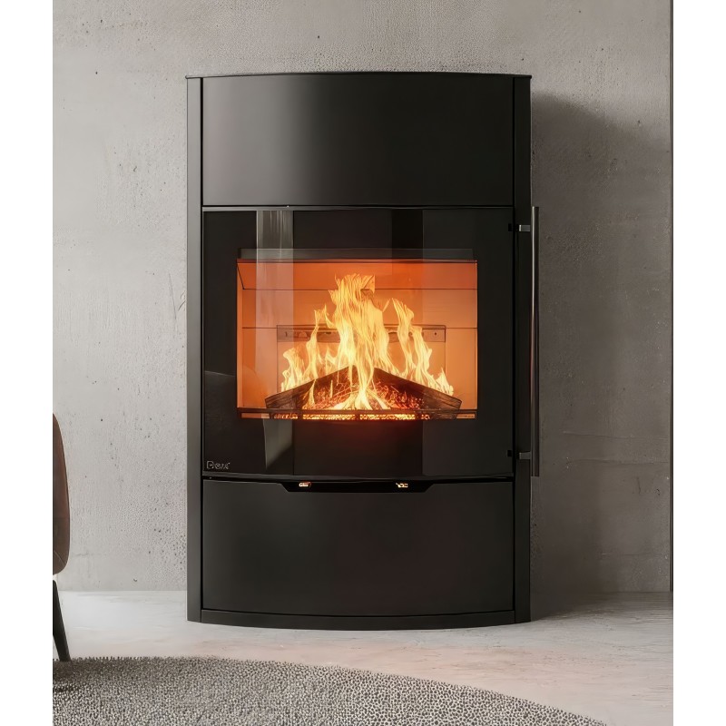 Несмотря на изящную форму, модель обладает мощностью 7 кВт и способна обогреть до 70 м². Внутренняя камера футерована светлым вермикулитом, который отражает тепло, повышая эффективность горения и подчеркивая яркость пламени. Корпус выполнен из высококачественной котловой стали с термостойким покрытием.