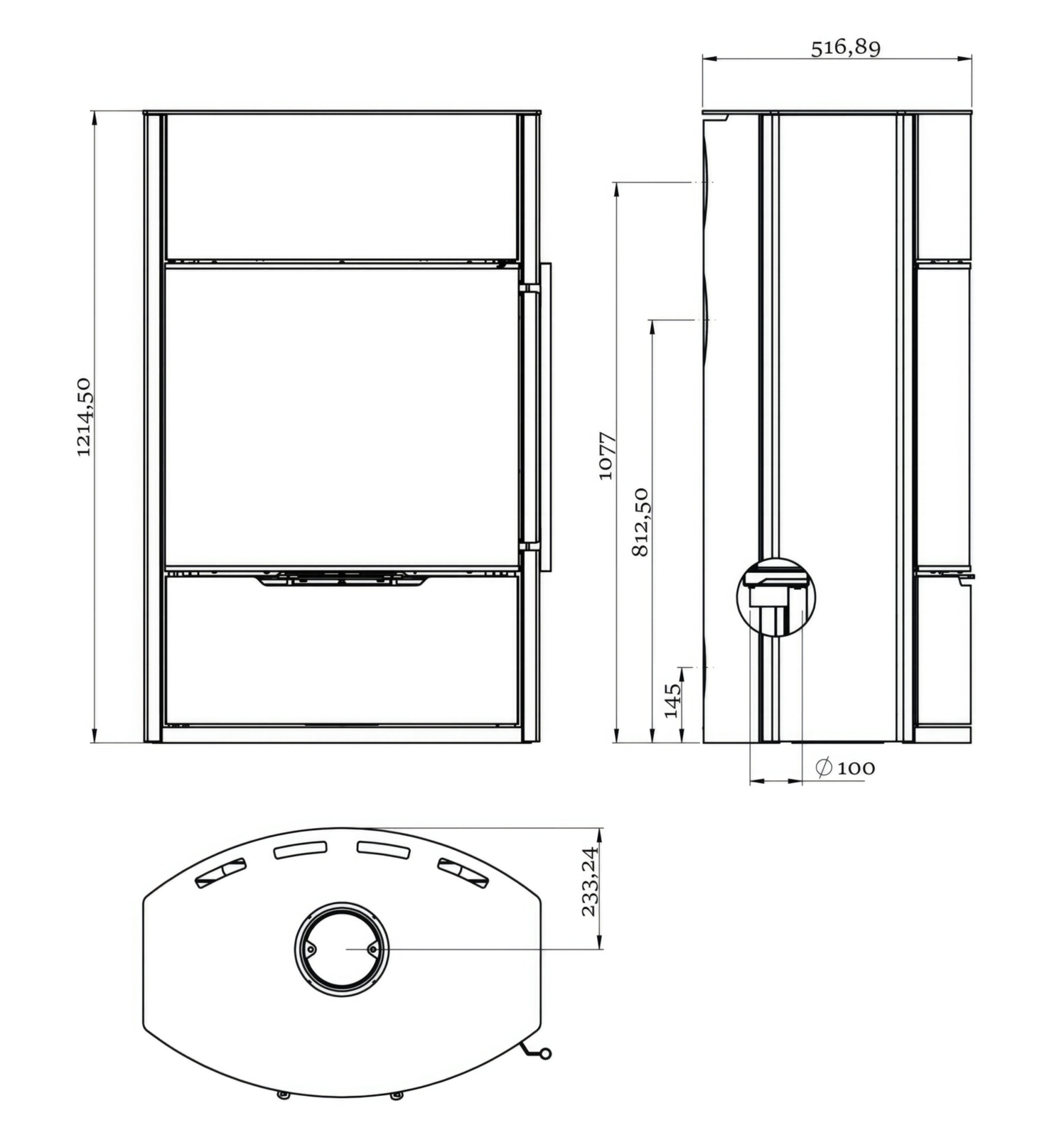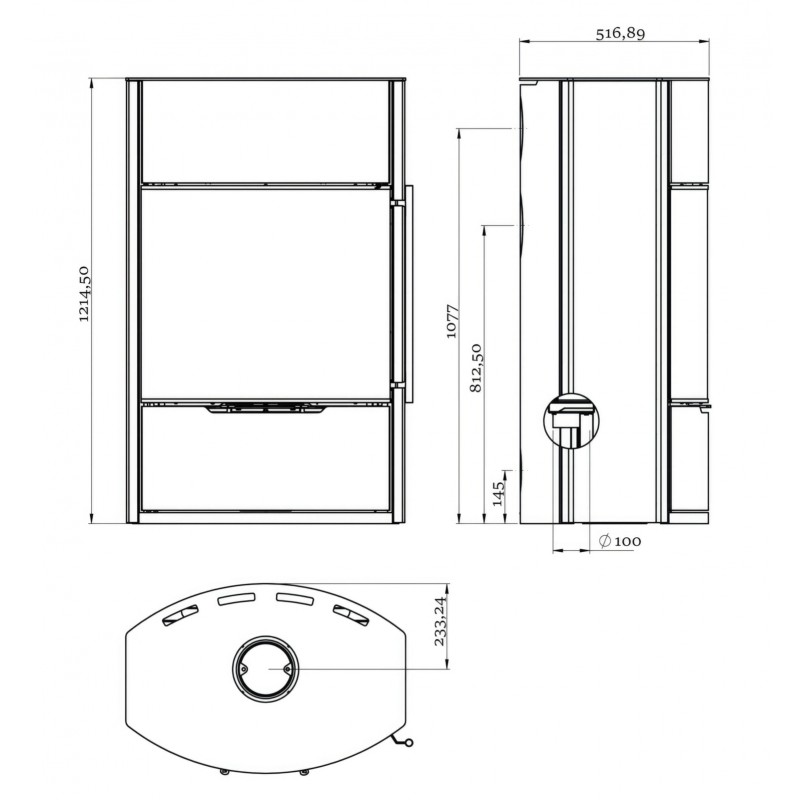 - Диаметр дымохода:150 мм