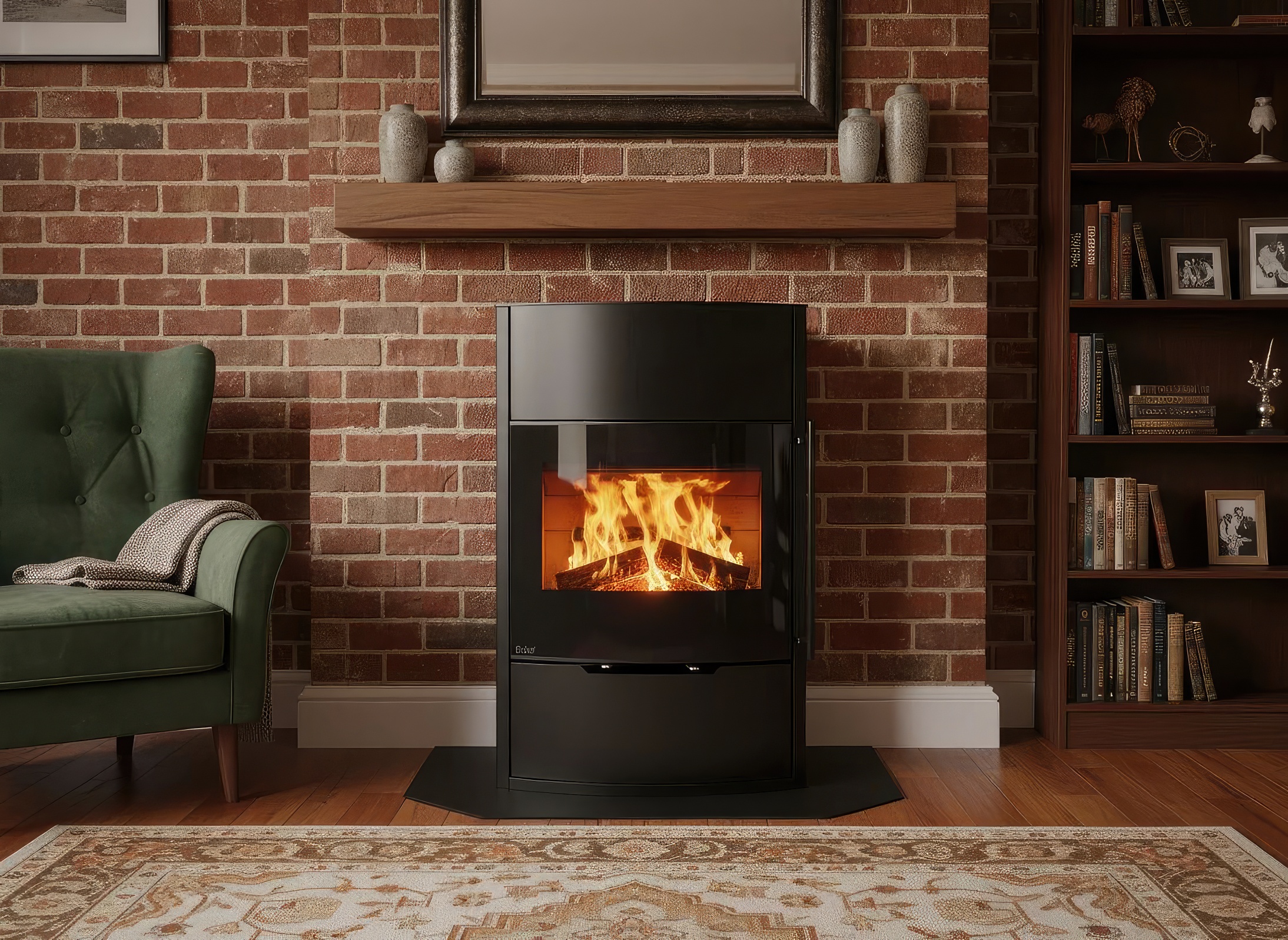 - Система Airwash («Чистое стекло»): Направленные потоки воздуха омывают обе стороны углового стекла, предотвращая оседание копоти.