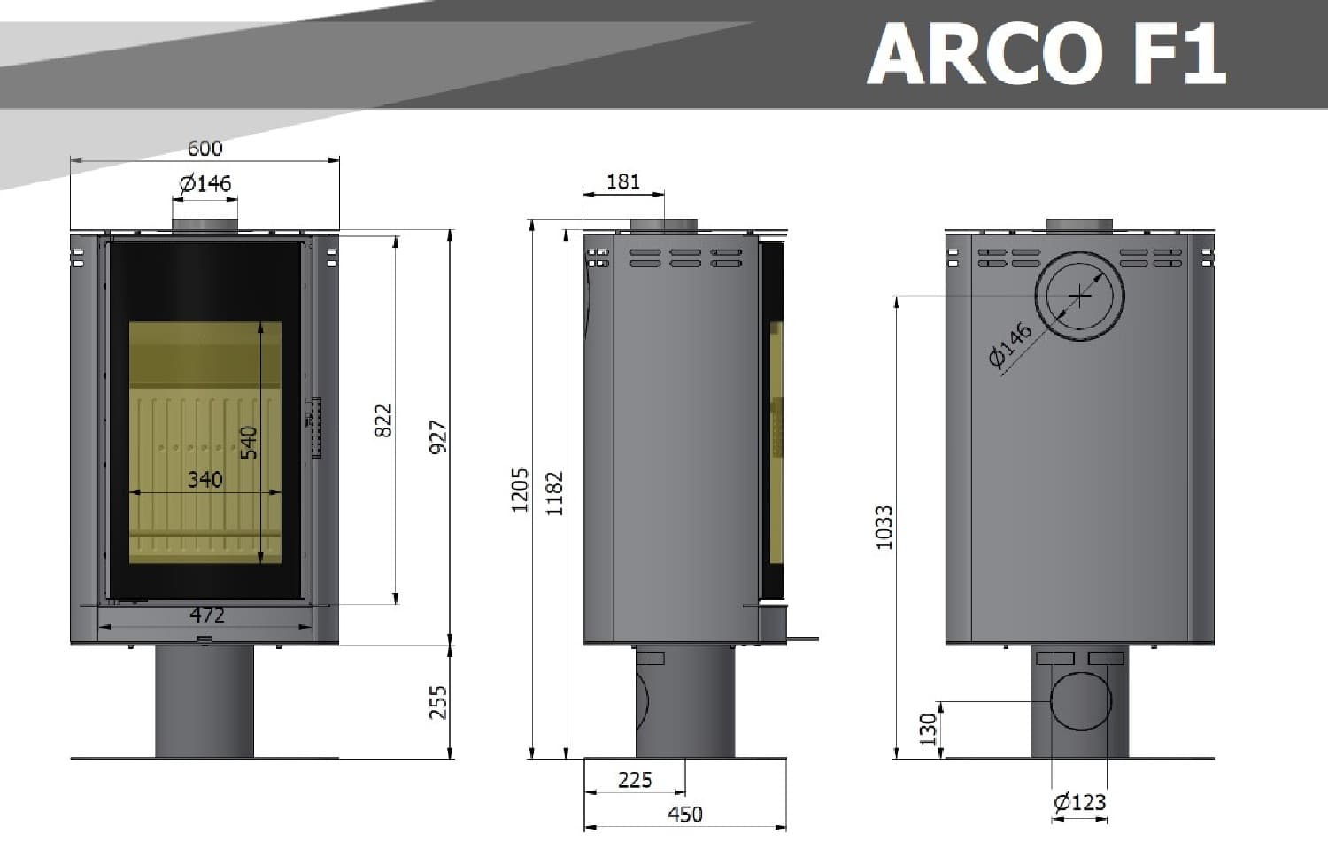 Печь-камин ARCO имеет закрытую камеру сгорания, облицованную накопительной керамикой, со съемной чугунной решеткой и зольником. Соединитель воздухозаборника обеспечивает постоянный доступ воздуха для горения, поэтому позволяет устанавливать печь в домах с механической вентиляцией или рекуперацией. Система разнонаправленной аэрации топлива и конструкция тройного отклонения дымовых газов обеспечивают идеальное сгорание и экономичность на самом высоком уровне. Эргономичный регулятор позволяет управлять мощностью устройства в пять ступеней, а вентилируемая ручка рукоятки с замком типа «Клик» повышает комфорт использования. Все модели ARCO предлагают возможность установки дымоотвода в двух плоскостях - вертикально вверх или горизонтально на задней стенке печи.
