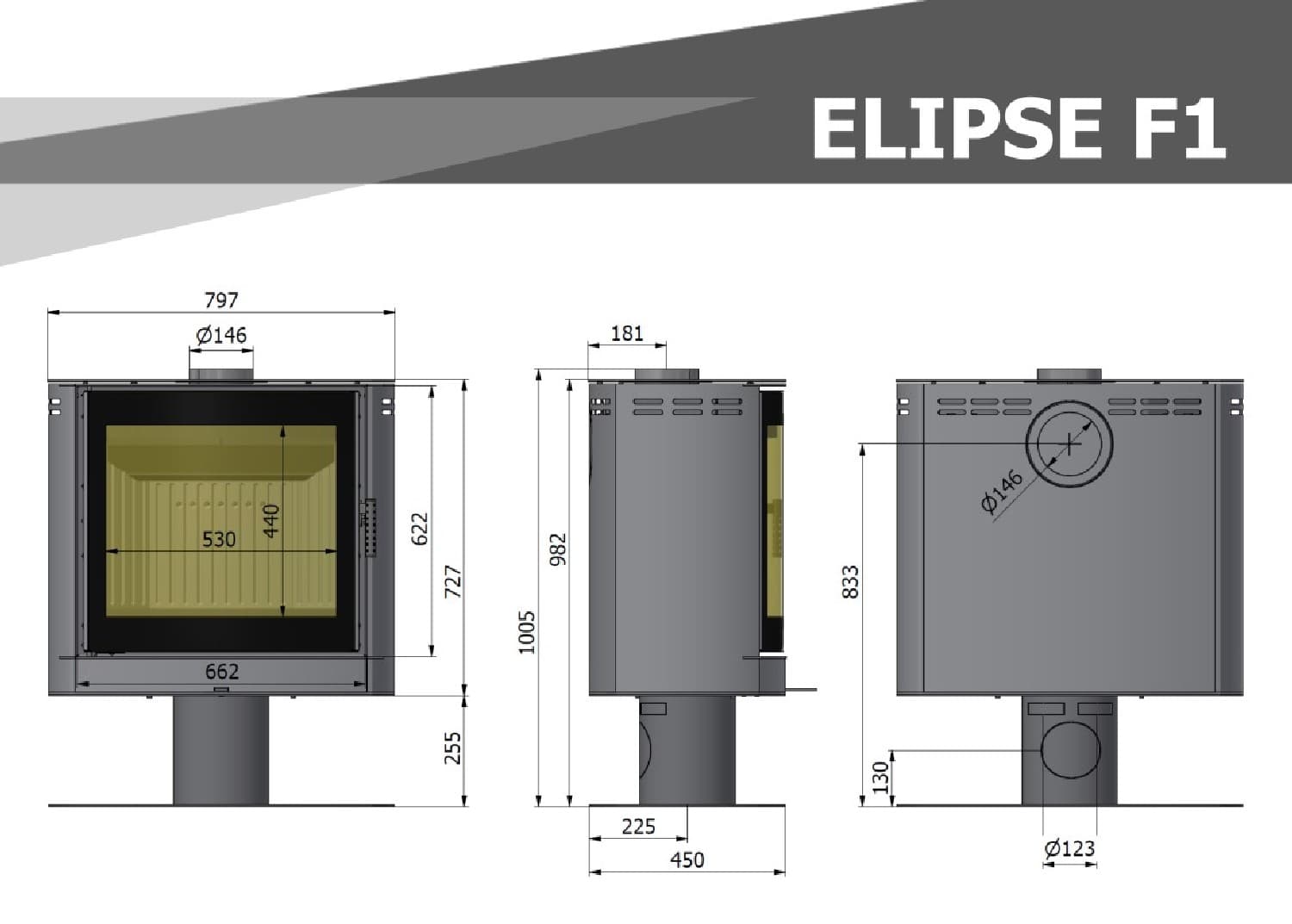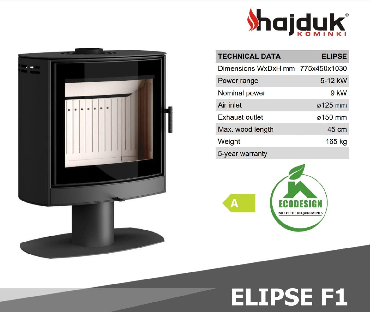 Печь-камин Hajduk ELIPSE F1 белый имеет закрытую камеру сгорания, облицованную накопительной керамикой, со съемной чугунной решеткой и зольником. Соединитель воздухозаборника обеспечивает постоянный доступ воздуха для горения, поэтому позволяет устанавливать печь в домах с механической вентиляцией или рекуперацией. Система разнонаправленной аэрации топлива и конструкция тройного отклонения дымовых газов обеспечивают идеальное сгорание и экономичность на самом высоком уровне. Эргономичный регулятор позволяет управлять мощностью устройства в пять ступеней, а вентилируемая ручка рукоятки с замком типа «Клик» повышает комфорт использования. Все модели ELIPSE предлагают возможность установки дымоотвода в двух плоскостях - вертикально вверх или горизонтально на задней стенке печи.