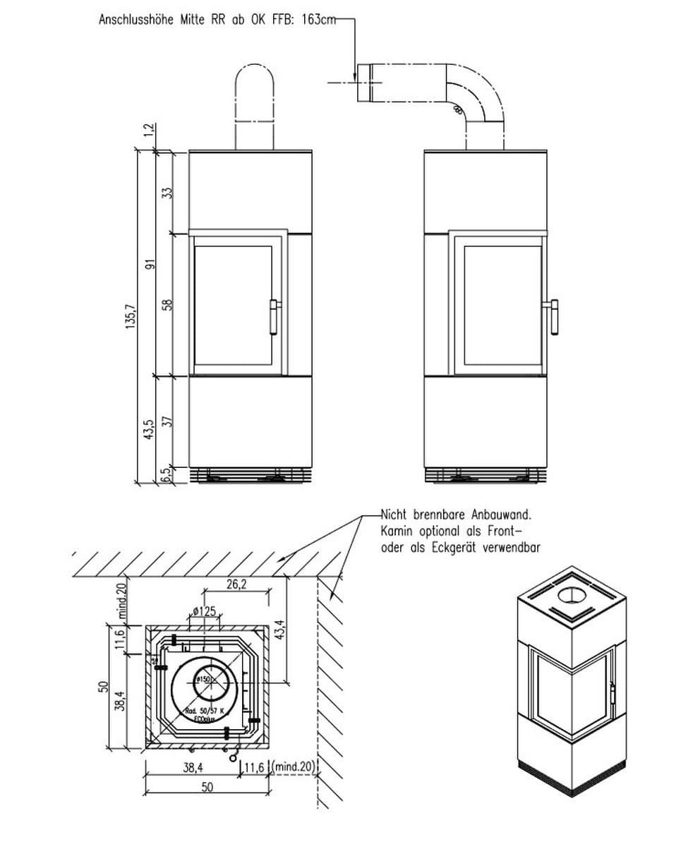 Любители прямых линий и ярких форм быстро полюбят «Пятьдесят». В конечном итоге дизайн демонстрирует «четкую грань». Это также относится к просторному угловому стеклу, через которое вы можете наблюдать танец пламени на бревнах с двух сторон. В отличие от обычных моделей печей, облицовка этой гибридной печи сделана из хакалита. Поскольку духовой шкаф поставляется загрунтованным, вы можете оформить поверхность в соответствии со своими идеями. В зависимости от ваших личных предпочтений вы можете покрасить печь в любой цвет или нанести эффектную штукатурку. У вас также есть дополнительная свобода действий, когда дело доходит до дизайна: печь доступна в различных версиях. В зависимости от ваших пожеланий и потребностей, вы можете расширить камин деревянной кроватью или скамейкой - также возможно сочетание элементов.