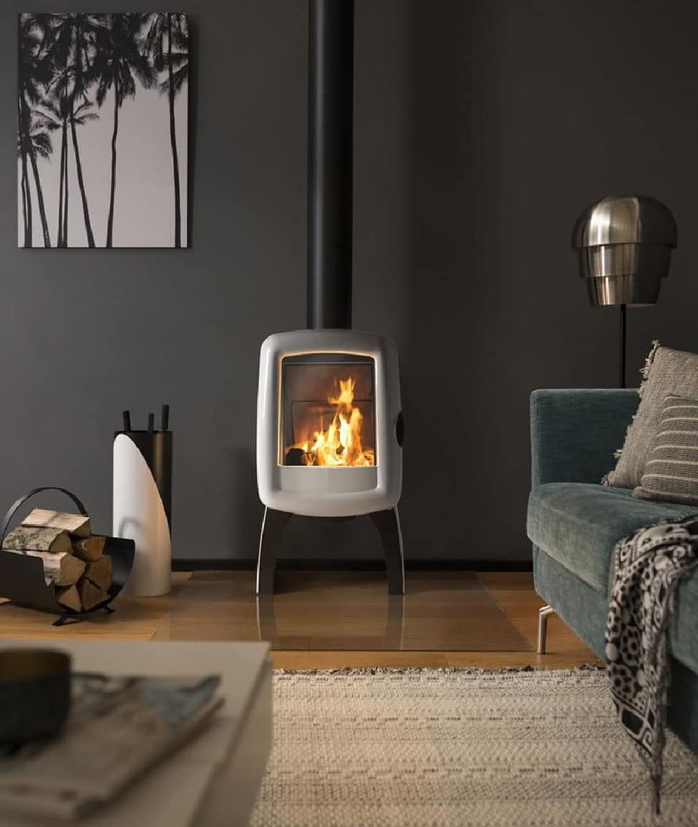 Печь-камин Invicta ELO М представлена в изящной и нестандартной форме для отопительного прибора. Её внешний вид сочетает классическое и современное направление стиля в декорировании. Цвет модели является имитированием оттенка чёрного угля.