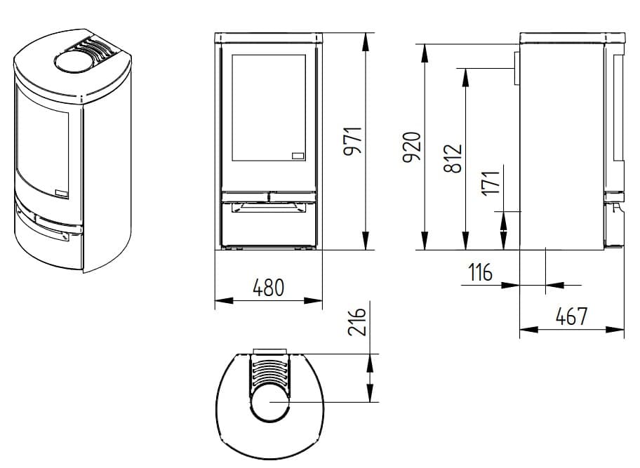 Печь-камин Jydepejsen Cosmo 971 чертеж: