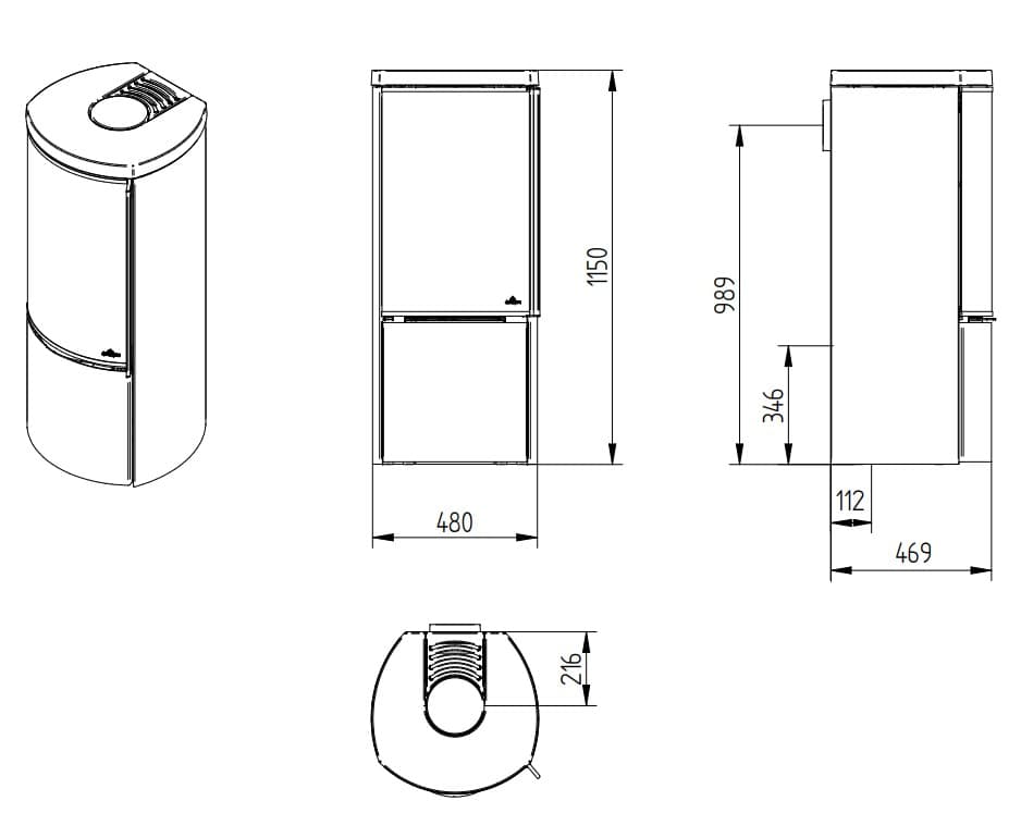 Диаметр дымохода: 150 мм.