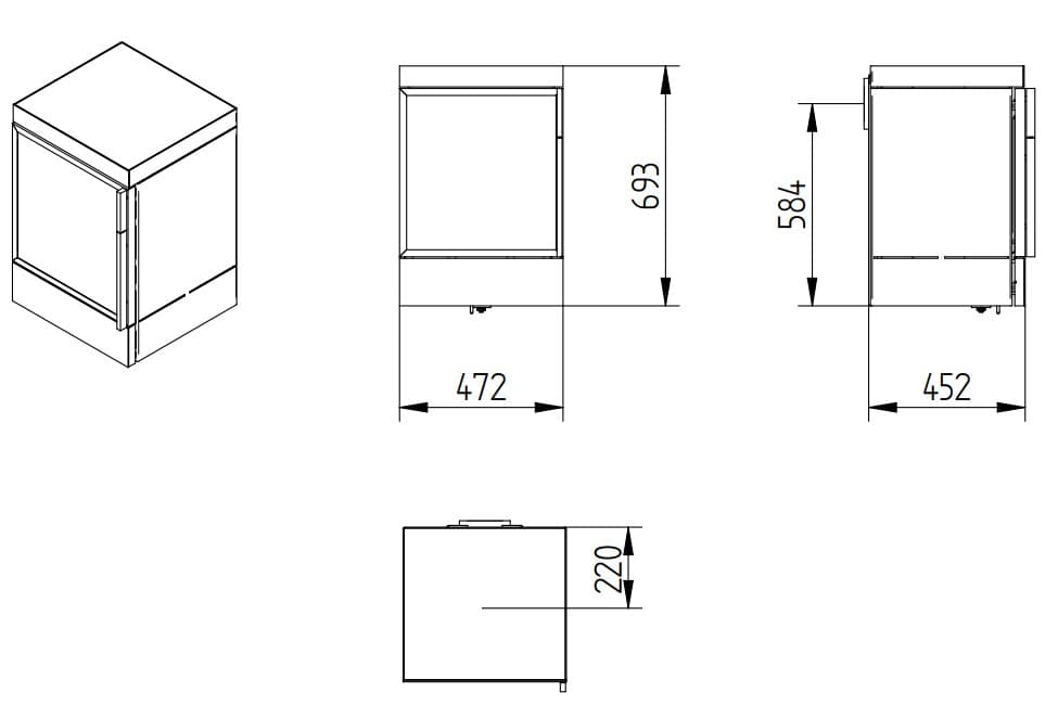 Печь-камин Jydepejsen Cubic Wall чертеж: