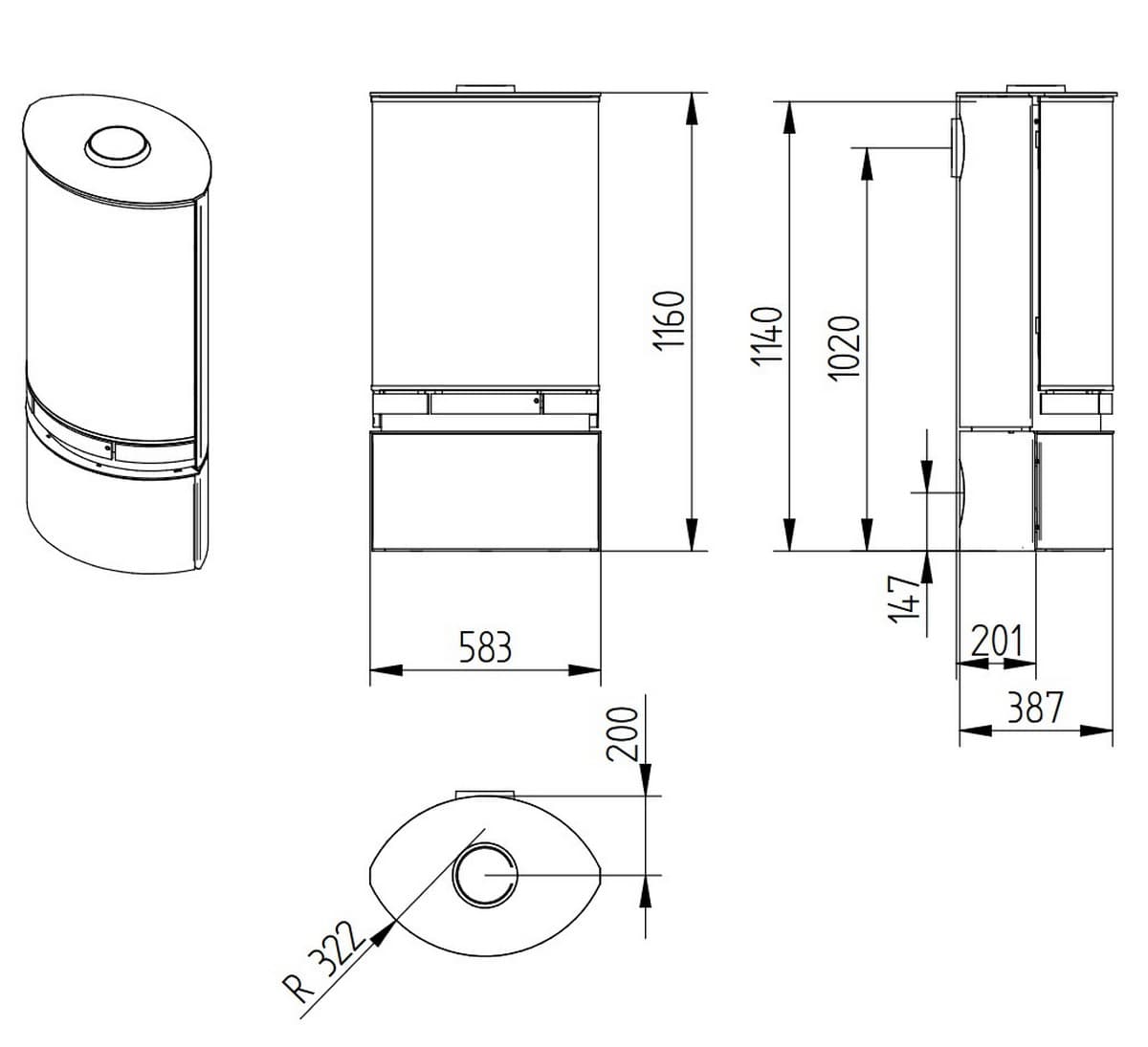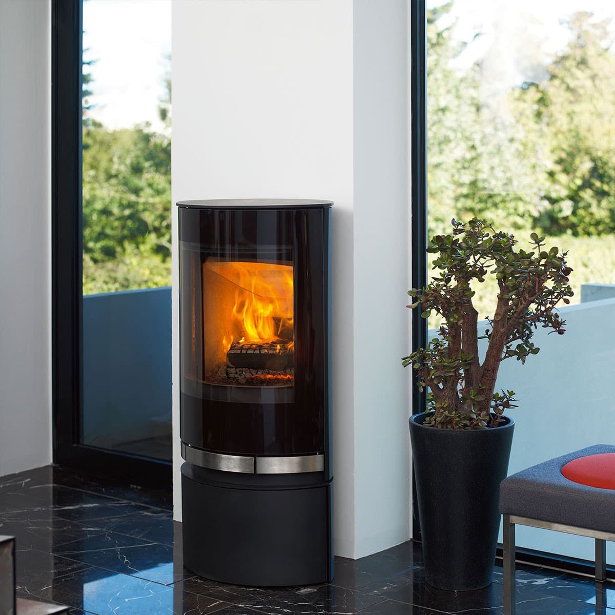 Печь-камин Jydepejsen Elegance Classic поворотная имеет уникальный овальный дизайн с привлекательными деталями.