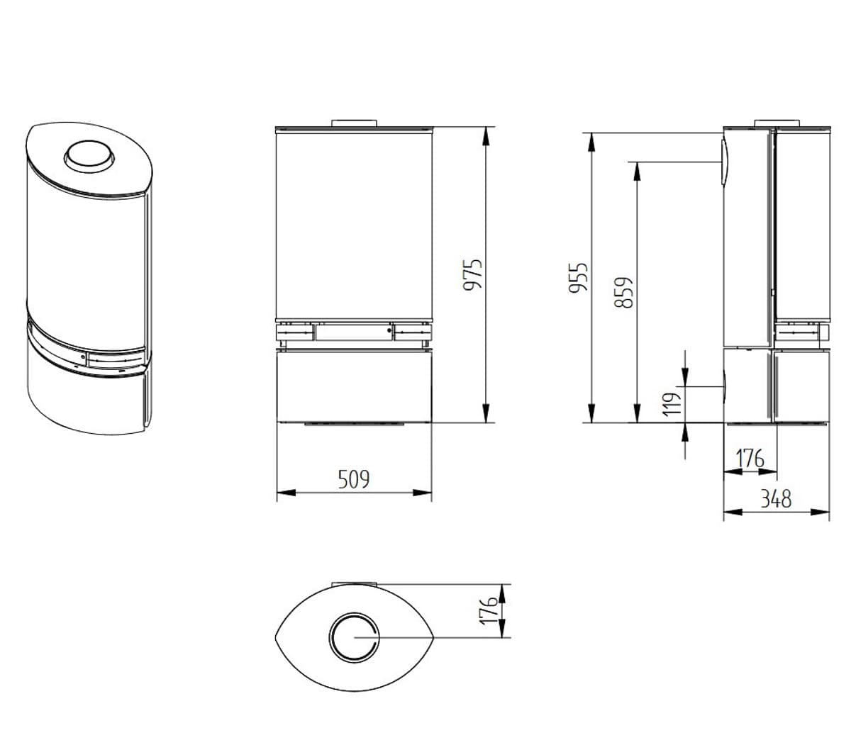 Дровяная печь Jydepejsen Junior поворотная имеет уникальный овальный дизайн с привлекательными деталями. Ручка встроена в красивую ленту из нержавеющей или черной стали, которая скрывает регулятор воздуха DuplicaAir.