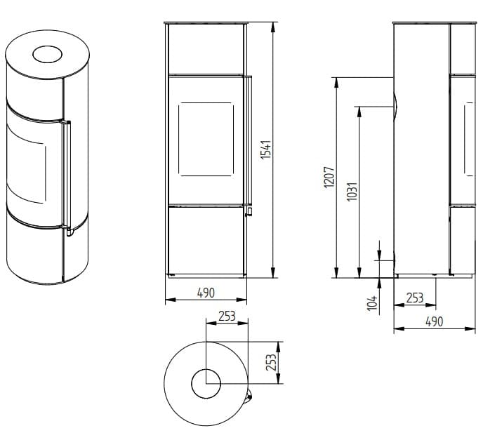 Jydepejsen Omega Core - дровяная печь цилиндрической формы с аккумулятором тепла.