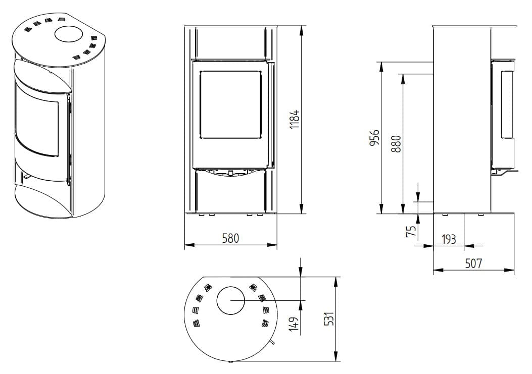 Печь-камин Jydepejsen Orion Steel чертеж: