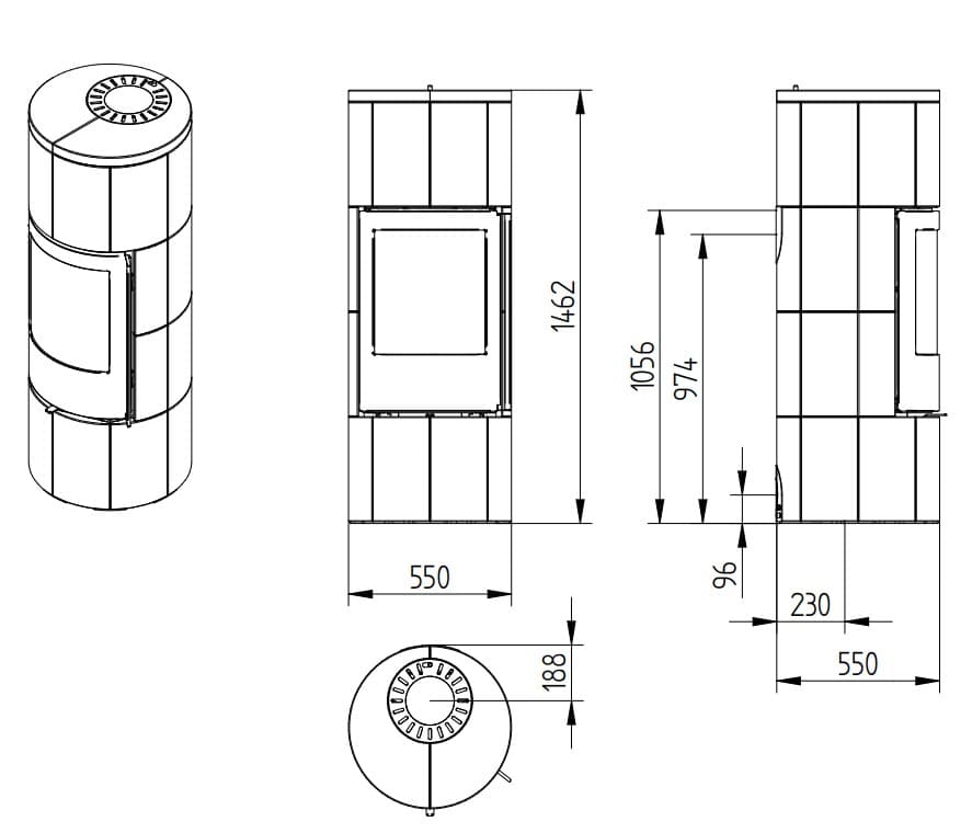 Печь-камин Jydepejsen Troja 44 Dark Sanstone чертеж: