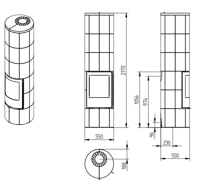 Печь-камин Jydepejsen Troja 46 Dark Sanstone чертеж: