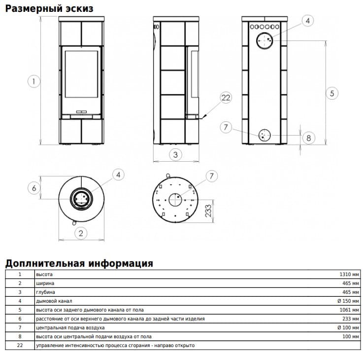 Корпус у печи цилиндрической формы с панорамным термостойким стеклом. Благодаря системе «Чистое стекло», на дверце долгое время не остается копоти и нагара и можно беспрепятственно наслаждаться игрой пламени.