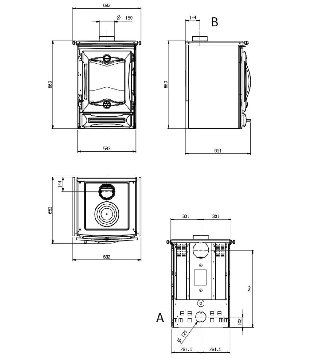 Благодаря жаропрочному стеклу, выдерживающему температуру до 750⁰ и надежно защищающему от открытого огня, полюбоваться на горящие дрова можно не опасаясь за свою безопасность. Подбросить которые можно как спереди, так и сбоку корпуса.