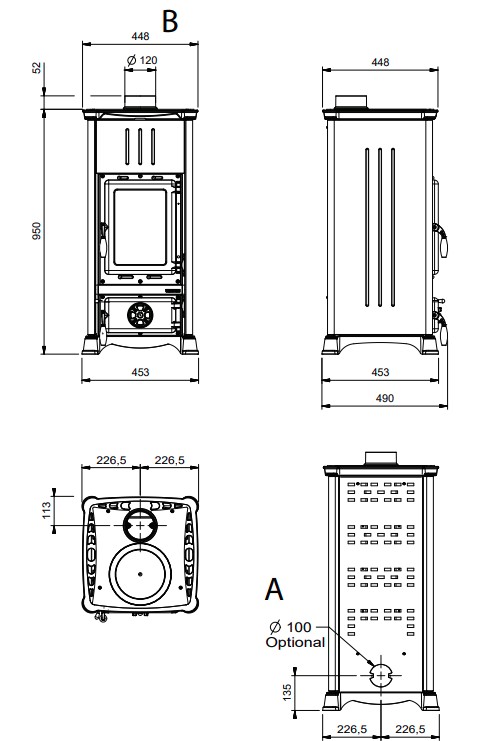 - Абсолютная герметичность дверцы: оборудование оснащено герметичной дверцей топочной камеры из высококачественного чугуна.