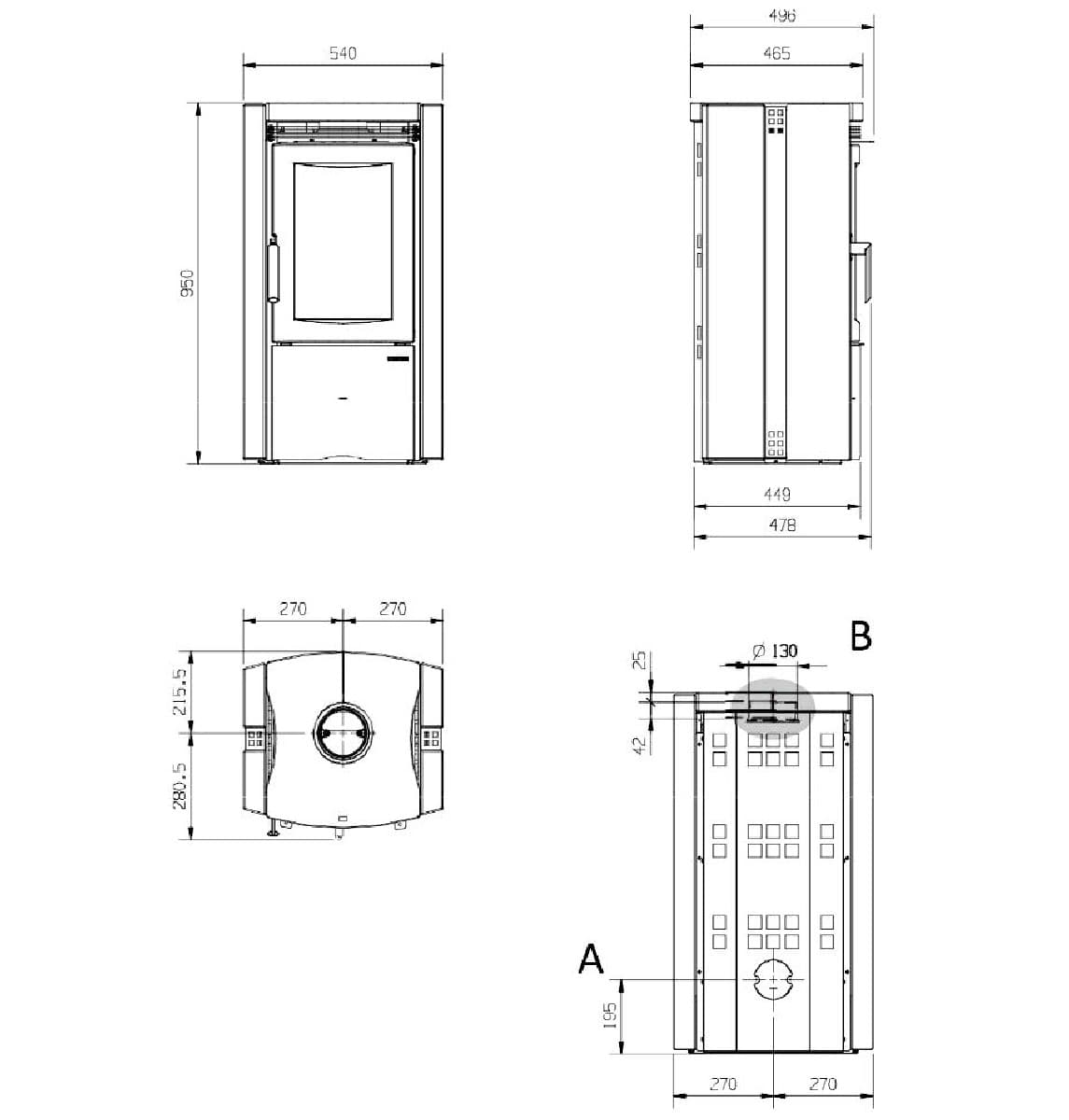 | Диаметр дымового патрубка | 130 мм |