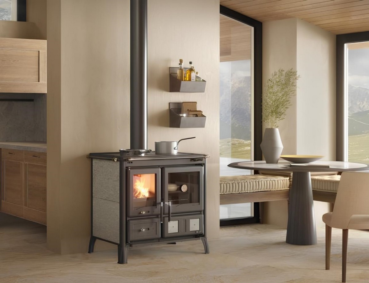 Печь-камин La Nordica Gardenia 5.0 - Petra - это красивая и массивная кухонная плита с отделкой из натурального камня и мощностью 9,5 кВт.