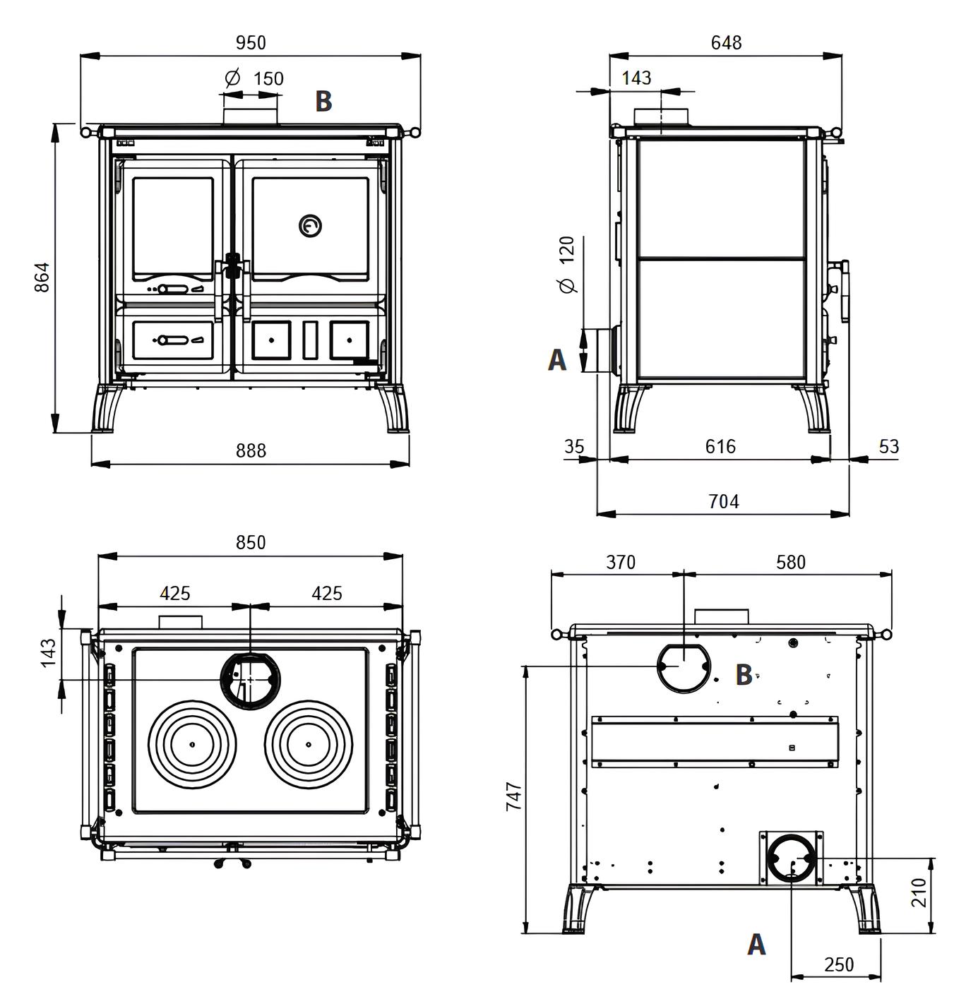 Особенностью этой печи является способность выполнять обычные функции приготовления и выпечки на любой кухне, независимо от газа или электричества. Она имеет 2 варочные поверхности и полноценное отделение для выпечки.