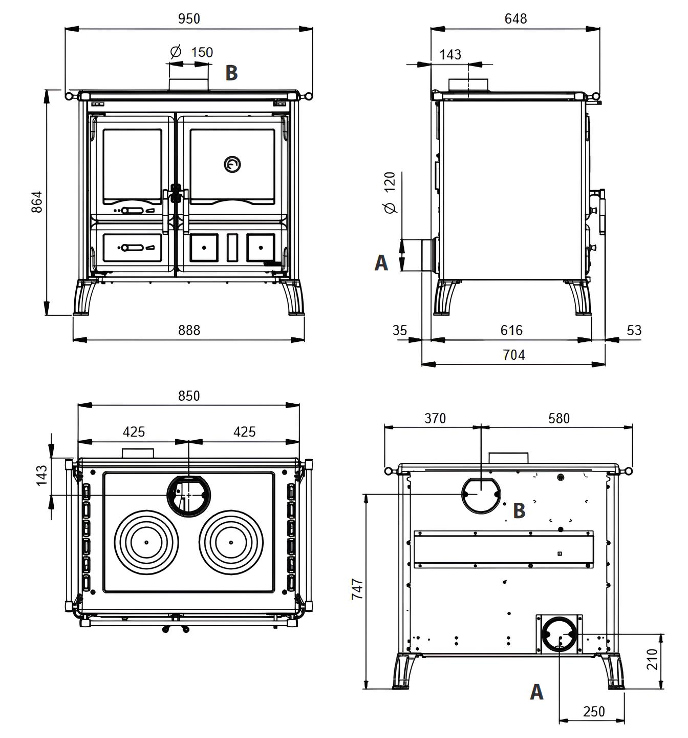 Особенностью этой печи является способность выполнять обычные функции приготовления и выпечки на любой кухне, независимо от газа или электричества. Она имеет 2 варочные поверхности и полноценное отделение для выпечки.
