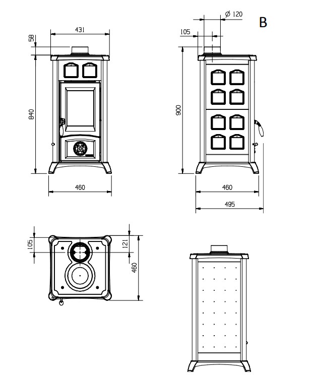 Камера сгорания и все соответствующие компоненты изготовлены из чугуна, что делает компактную печь долговечной и не требующей особого ухода.
