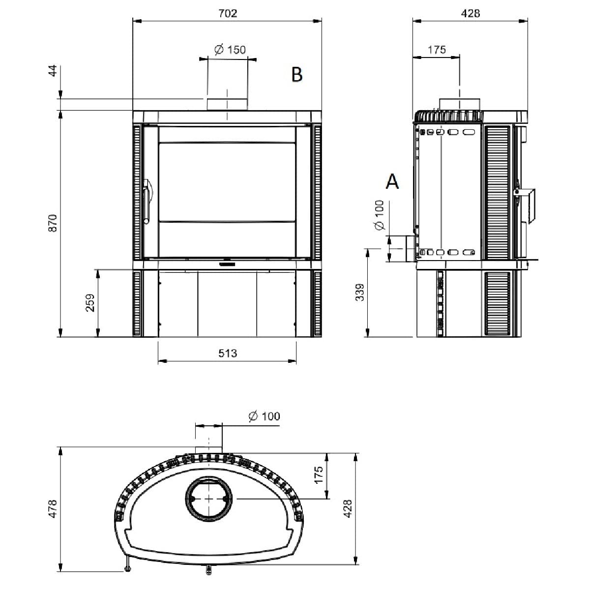 Благодаря жаропрочному стеклу, выдерживающему температуру до 750⁰ и надежно защищающему от открытого огня, полюбоваться на горящие дрова можно не опасаясь за свою безопасность. Подбросить которые можно как спереди, так и сбоку корпуса.