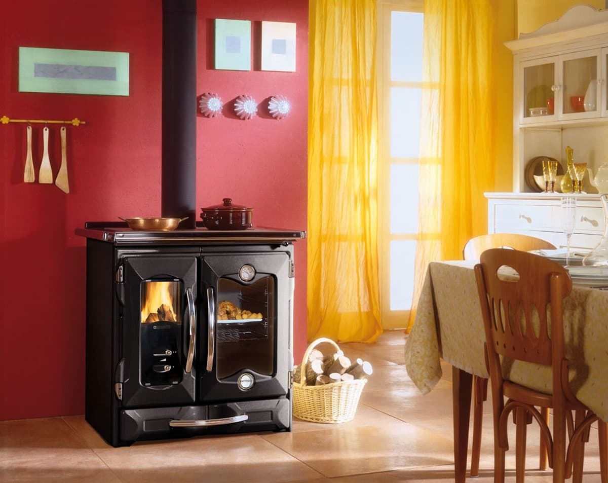 Печь-камин La Nordica Mamy итальянского производства изготовлена из стали и чугуна.