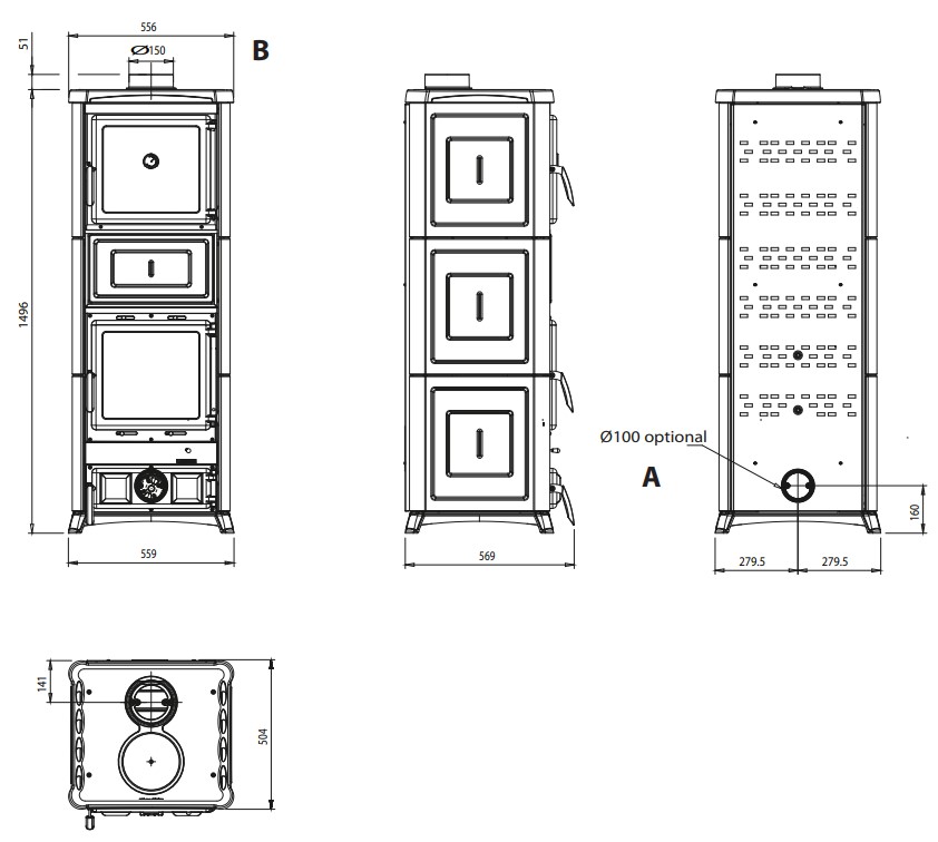 - Абсолютная герметичность дверцы: оборудование оснащено герметичной дверцей топочной камеры из высококачественного чугуна.
