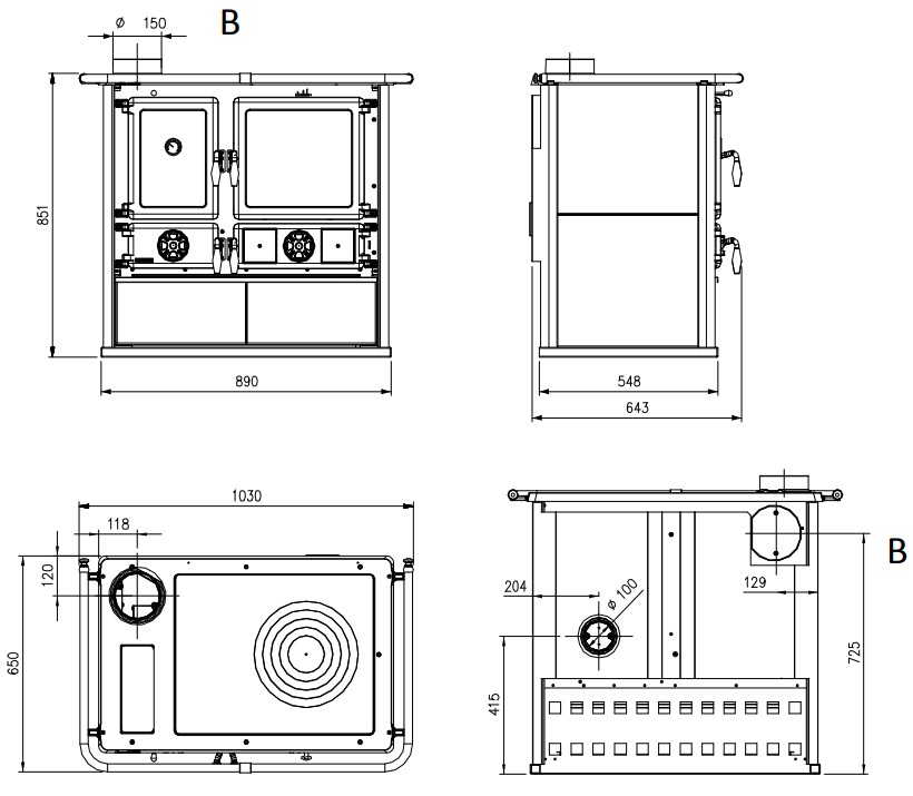 - Абсолютная герметичность дверцы: оборудование оснащено герметичной дверцей топочной камеры из высококачественного чугуна.