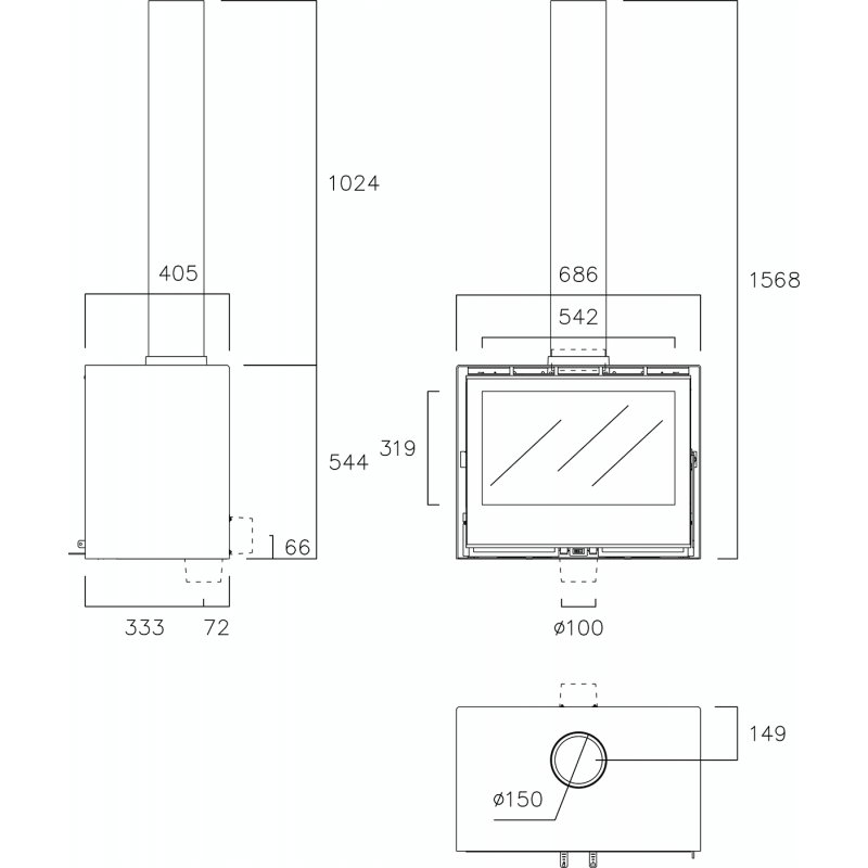 | Высота | 544 мм - без трубы; 1568 мм - с трубой |