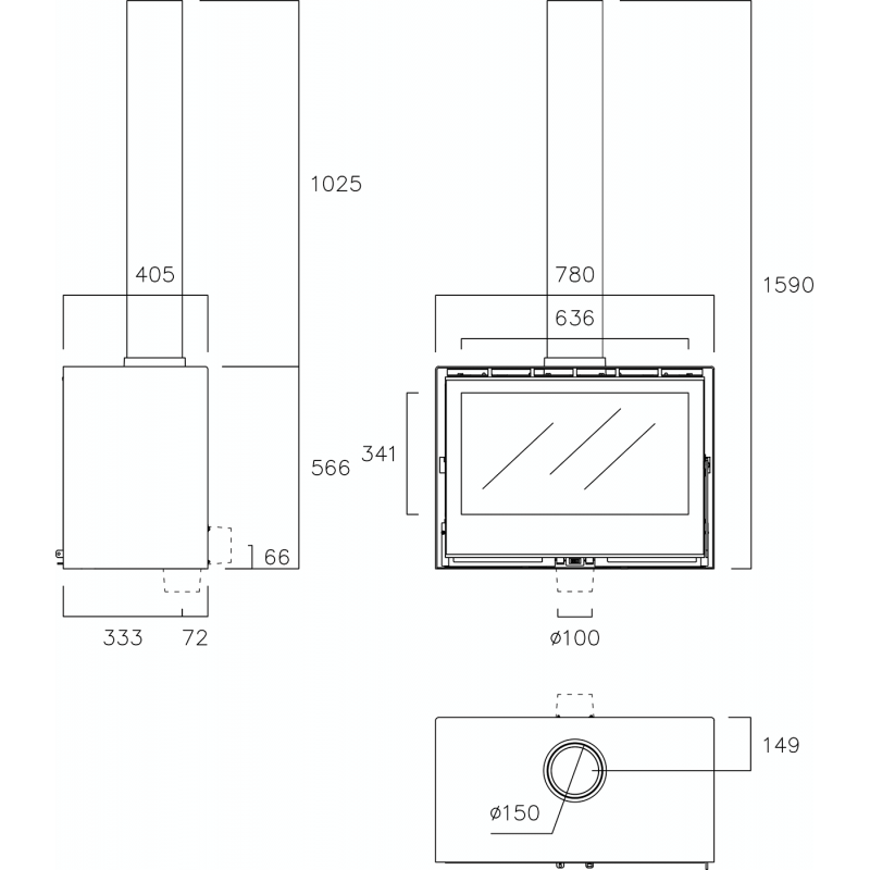 | Высота | 566 мм - без трубы; 1590 мм - с трубой |
