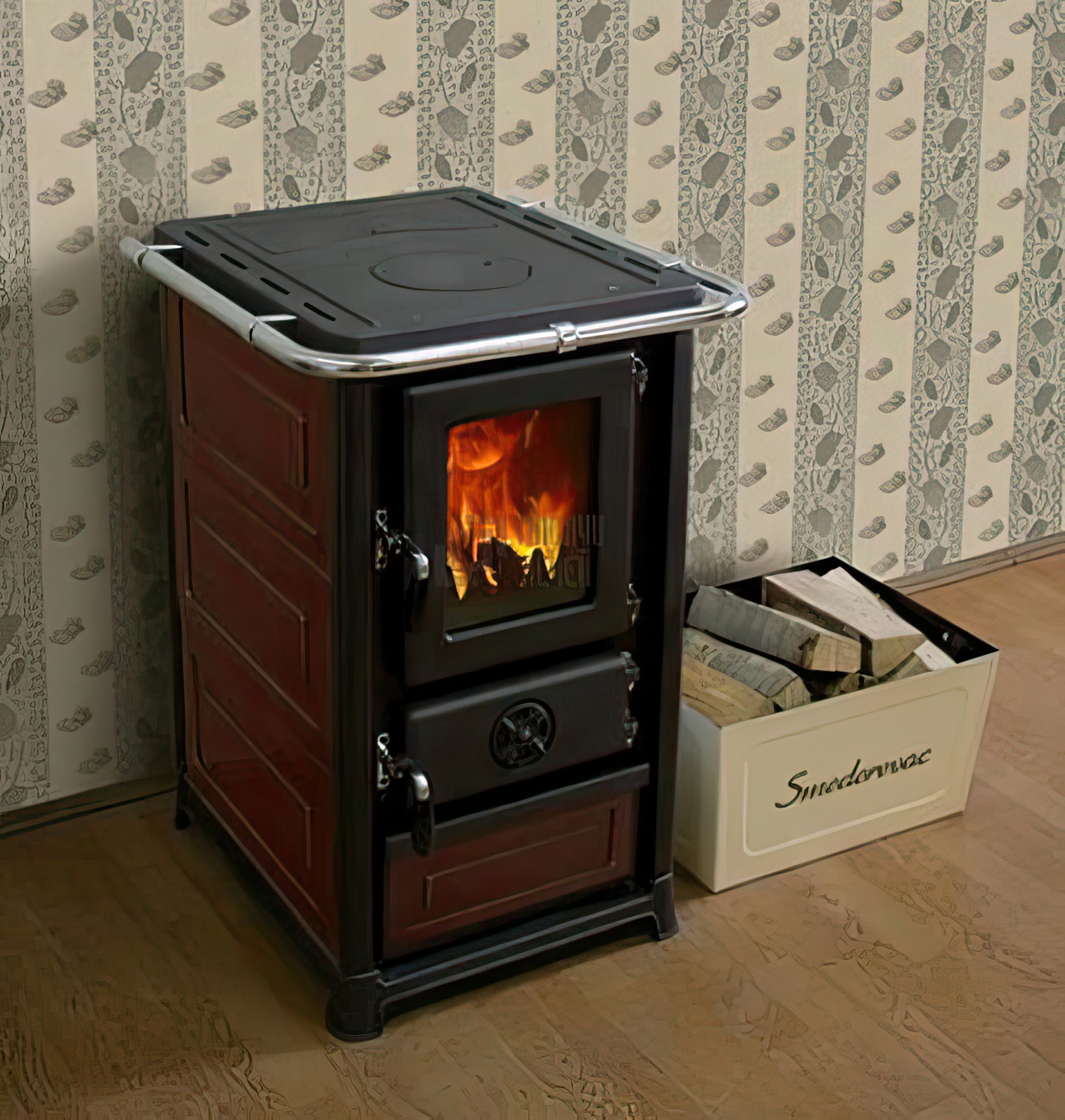 Дровяная варочная печь-камин предназначена для отопления небольших дачных домов и приготовления пищи. Печь-камин изготовлена из чугуна и эмалированной стали.
